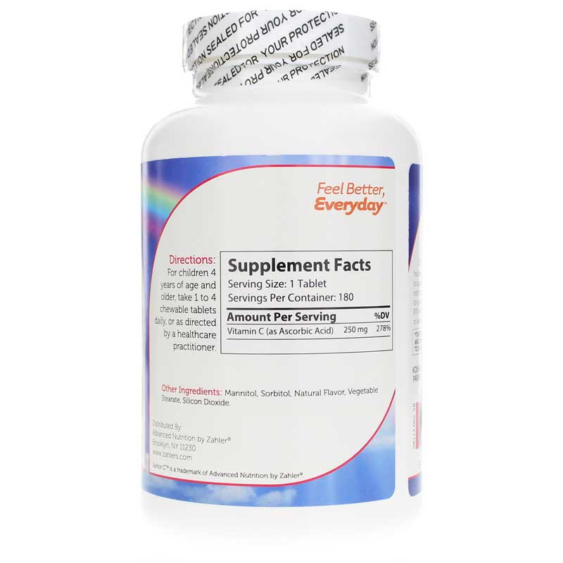 - Vitamin C functions as a powerful antioxidant, immune booster and improves iron absorption. Junior C contains 250 mg of Vitamin C in a delicious orange-flavored tablet.