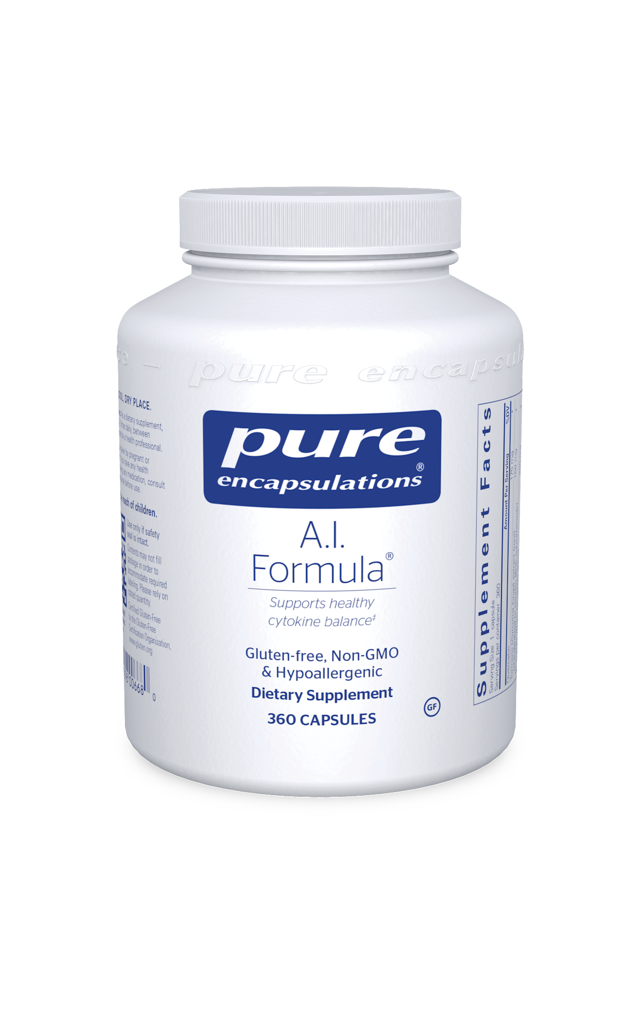 Maintains a healthy immune response at the cellular level, providing potential support for musculoskeletal and intestinal comfort*. A.I. Formula is a broad spectrum, synergistic combination of concentrated extracts which maintain healthy leukotriene, thromboxane, kinin and fibrin production.* Made with ginger, turmeric, and other complementary ingredients Made with hypoallergenic, vegan ingredients