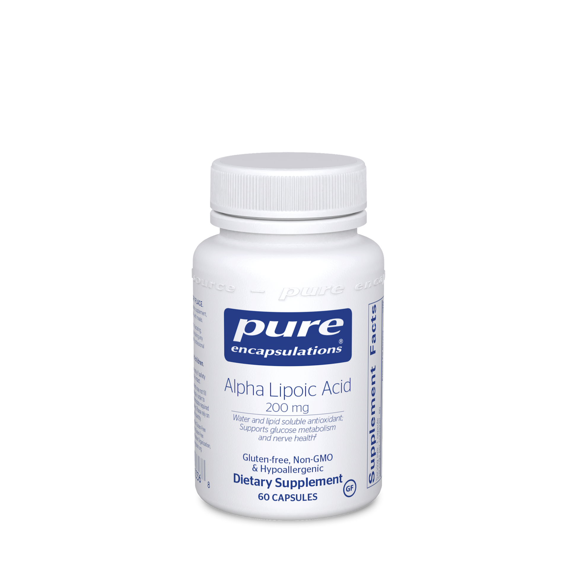 Alpha lipoic acid is both water and fat-soluble which allows it to function in almost any part of the body as an antioxidant. A key component of the metabolic process, alpha lipoic acid produces energy in muscles and directs calories into energy production. Also, it helps maintain healthy glucose metabolism, supports the nervous system and provides nutritional support for healthy liver function. Alpha lipoic acid supported nerve health in subjects who participated in a randomized, double-blind, placebo-controlled, multicenter trial. The ability of alpha lipoic acid to modulate nitric oxide metabolite activity and to promote healthy microcirculation accounted for its ability to promote nerve cell health in two separate studies.*