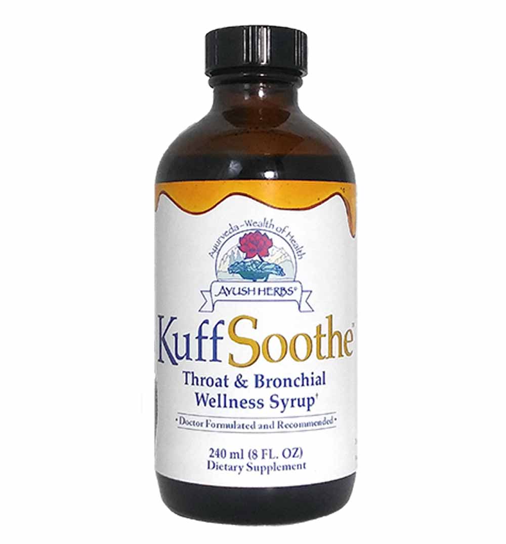 - Ayush Herbs KuffSoothe is formulated to be a complete immune support and cough reliever for the whole family. This natural honey mixture blended with Ayush Flucomune™ will ease sore throats associated with hoarseness, dry throat, and irritants while strengthening the immune system. Kuffsoothe™ will get you back to feeling great.