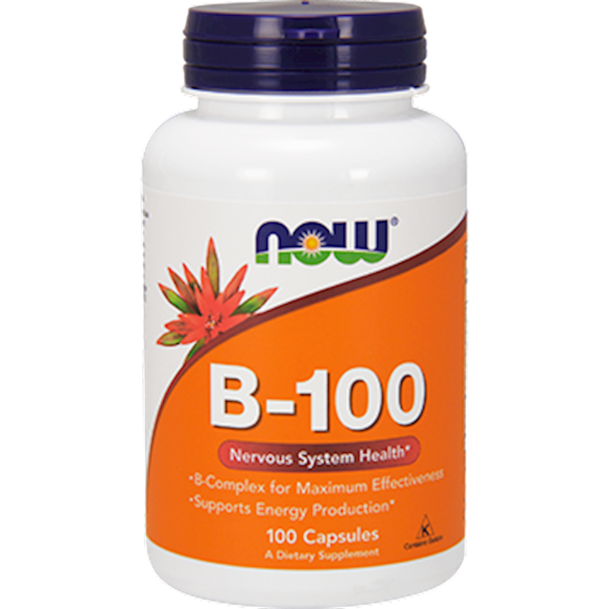 B-100 Caps provide a full complement of B-vitamins plus choline and inositol. These vitamins work to support energy production, maintain healthy homocysteine metabolism, and promote the health of the nervous system.* B-vitamins are water soluble, and with the exception of B-12, have limited storage in the body and thus require daily replenishment. While B-12 is stored in the liver, dietary sources are of animal origin only (meat and dairy) and supplementation with B-12 may be especially important for vegetarians. Natural color variation may occur in this product. B-Complex for Maximum Effectiveness Supports Energy Production*