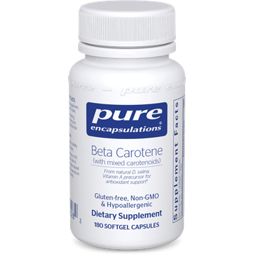 Beta carotene is a precursor to vitamin A. It supports immune health, supports visual acuity, and quenches free radicals. Beta carotene’s antioxidant potential also supports healthy tissues and DNA integrity. As a precursor, the body converts beta carotene to vitamin A as needed.*