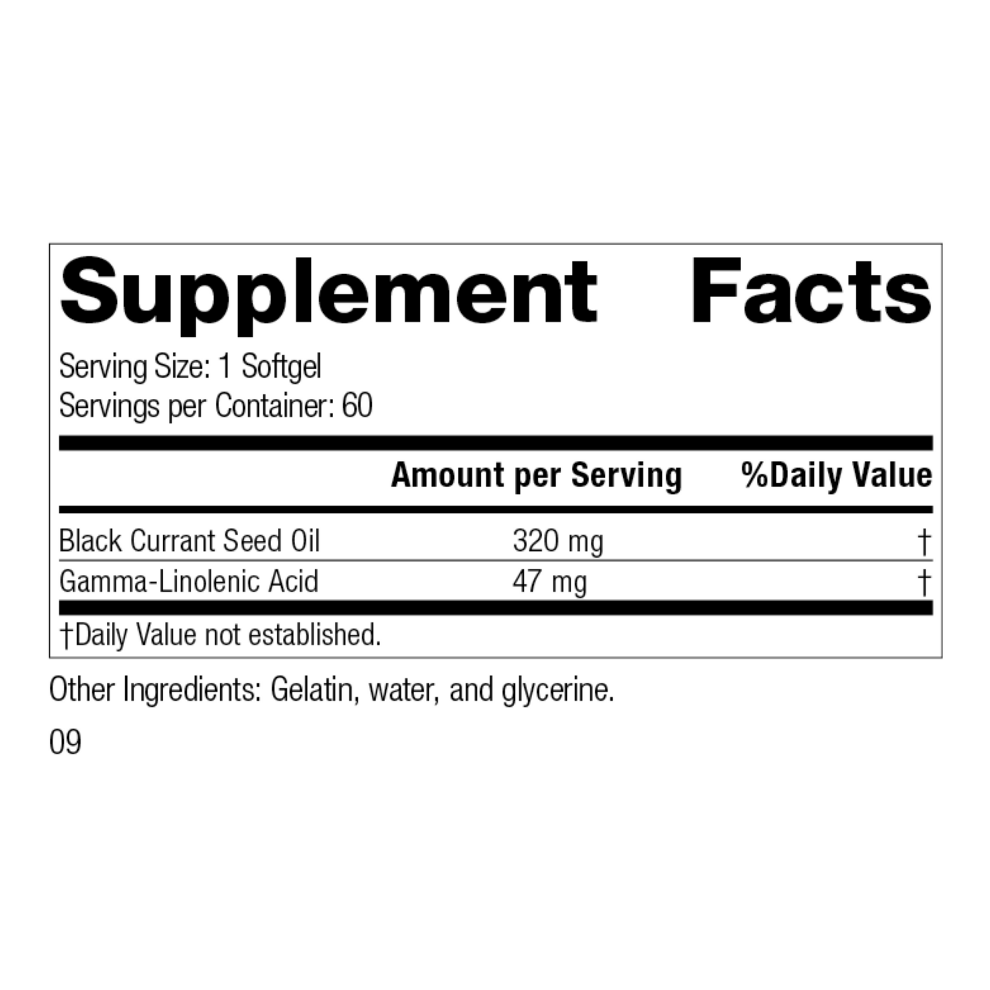 Black Currant Seed Oil contains the essential fatty acid gamma-linolenic acid (GLA).