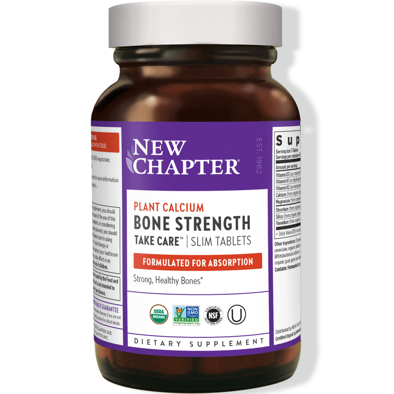 Supports healthy bones and joints while reducing the risk of osteoporosis* with plant-sourced, whole-food Calcium in easy-to-swallow tiny tablets.* Bone Strength Take Care is complete plant Calcium from Red Marine Algae (Lithothamnion), sustainably harvested from Icelands pristine shores. New Chapter's Tiny Tabs formula delivers this award-winning whole-food Calcium supplement in an easy-to-swallow, miniature tablet form. Bone Strength Take Care is formulated to strengthen bones and help with the absorption of Calcium, support joint flexibility, and help maintain proper artery health.* When you dont get enough calcium in your bloodstream, calcium is taken from your bones. Bone Strength Take Care supplements your diet with quality plant Calcium for holistic bone health. Reduces the risk of osteoporosis* (loss of bone density starts around age 30) 3-in-1 Benefits: Bone strength support, joint flexibility, and heart health support* Clinical strength plant calcium has added Vitamin K2 to direct calcium to bones, fermented Vitamin D3 for proper Calcium absorption* In easy-to-swallow tiny tablets with slow and steady release* Adequate calcium throughout life, as part of a well-balanced diet, may reduce the risk of osteoporosis.*