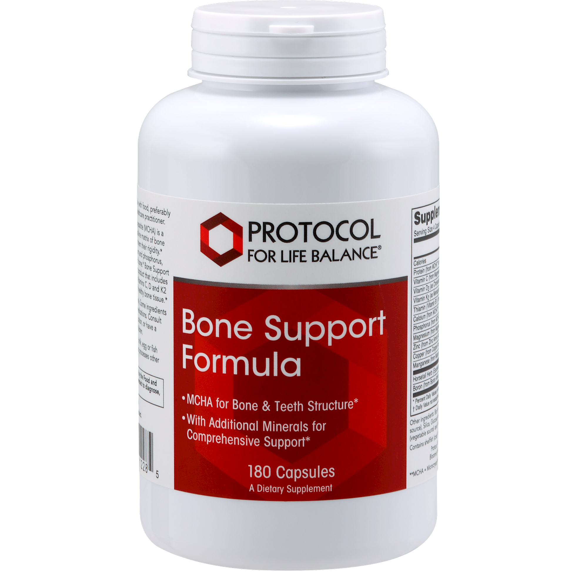 Microcrystalline Hydroxyapatite (MCHA) is a natural compound that makes up the crystalline matrix of bone and teeth, and is the substance that gives them their rigidity.* MCHA consists of highly absorbable calcium and phosphorus, which are the major mineral components of bone.* Bone Support Formula is a comprehensive bone support product that includes Magnesium and trace minerals, as well as Vitamins C, D and K2 to aid in the synthesis and maintenance of healthy bone tissue.* MCHA for Bone & Teeth Structure* With Additional Minerals for Comprehensive Support*