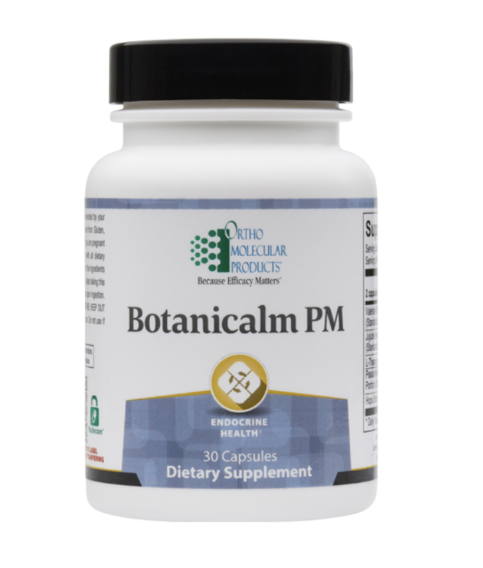 Botanicalm PM includes valerian root, a well-known herb used to help with sleep-related issues and to produce a state of relaxation. Passionflower and jujube have been used historically to produce a state of relaxation, and have been used in those with overstimulation and scattered thoughts. L-theanine, an amino acid found in green tea, supports resilience to stress by increasing alpha brain wave activity. Two capsules of Botanicalm PM include 450 mg valerian root extract, 200 mg jujube seed extract, 150 mg passionflower extract, 150 mg L-theanine and 100 mg hops strobile extract.