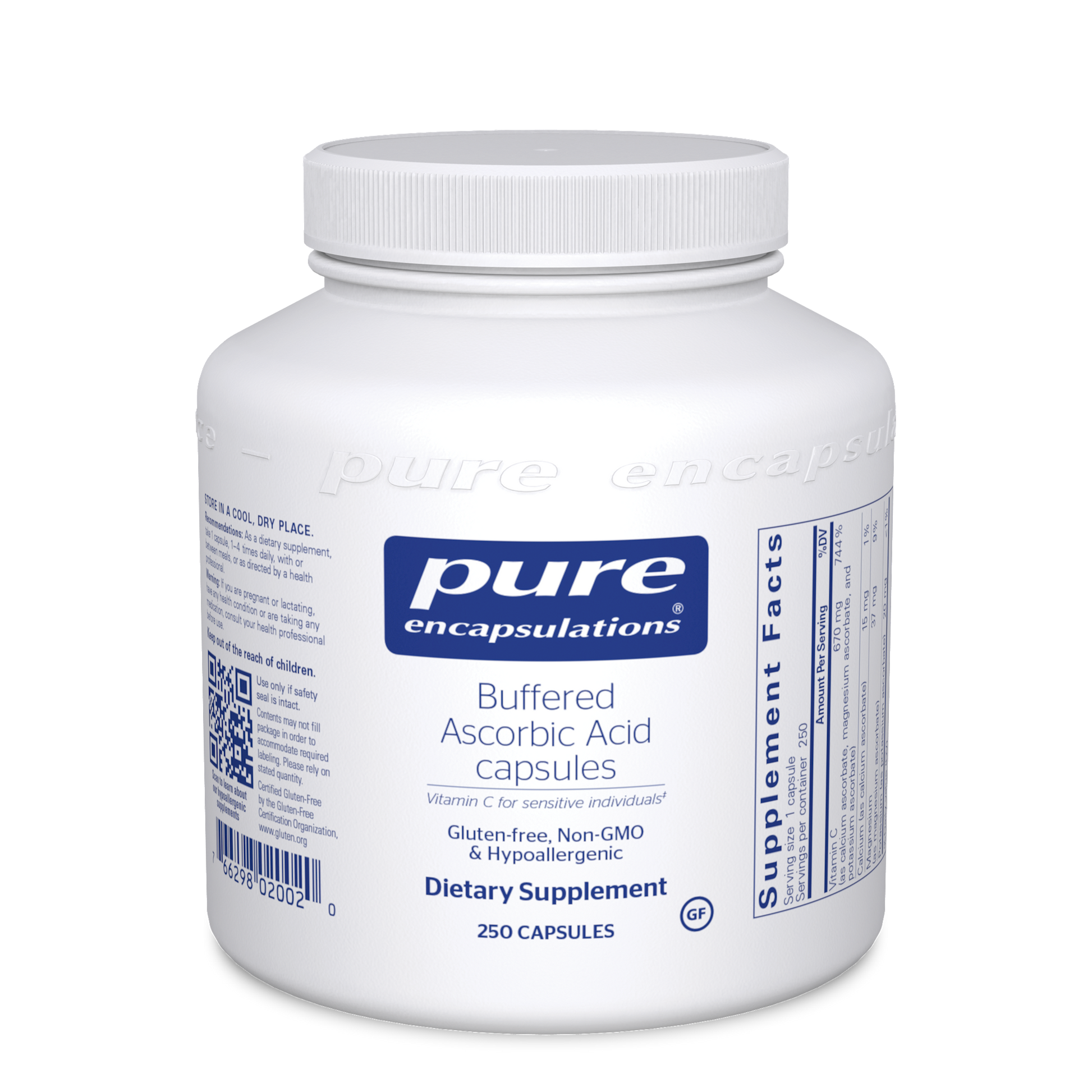 Pure Encapsulations has temporarily discontinued the 250 vcap size of this product. Please check the 90 cap size (BUF14) for availability. Vitamin C as mineral ascorbates for sensitive individuals. Buffered ascorbic acid combines calcium ascorbate, magnesium ascorbate, and potassium ascorbate to create a neutral pH vitamin C. This special form of ascorbic acid lessens possible gastric irritation in sensitive individuals. Vitamin C for sensitive individuals Buffered ascorbic acid combines calcium ascorbate, magnesium ascorbate, and potassium ascorbate to create a neutral pH vitamin C.* This special form of ascorbic acid lessens possible gastric irritation in sensitive individuals.*