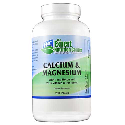 Calcium & Magnesium with 1 mg Boron and 25 I.U. Vitamin D per tablet.