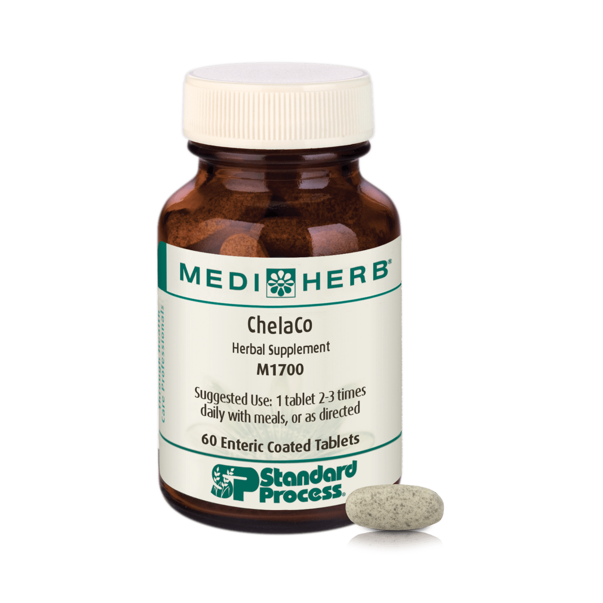 The combination of herbs in ChelaCo contains many compounds including oligomeric procyanidins, flavonoids (such as vitexin-2-rhamnoside), flavonolignans (collectively known as silymarin), and sulfur compounds (particularly alliin). This product is standardized to contain 2.0 mg of vitexin-2-rhamnoside and 80 mg of flavanolignans (calculated as silybin) per tablet to ensure optimal strength and quality.