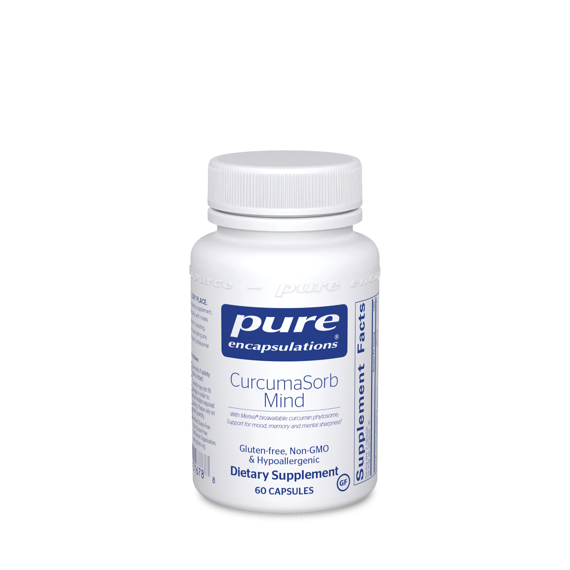 Curcumin and polyphenol blend to promote mood, memory and mental sharpness* CurcumaSorb Mind offers a broad range of polyphenol compounds, including flavonoids, EGCG and oligomeric proanthocyanidins (OPCs) to promote daily cognitive function and emotional wellness. Curcumin and other polyphenols support neuronal stability and function, in part by promoting healthy cytokine balance and antioxidant defenses. Numerous clinical studies indicate that curcumin supports positive mood through these actions, as well as through the promotion of healthy levels of serotonin and dopamine. Animal research suggests that polyphenols may also offer support for occasional stress and mental alertness. In a randomized, double-blind, placebo-controlled trial involving obese individuals, 1,000 mg of a standard curcumin extract promoted relaxation. Curcumin is offered in this formula as the highly bioavailable Meriva curcumin-phosphatidylcholine complex, which utilizes proprietary phytosome technology to increase resistance to degradation in the digestive tract and enhance absorption. Neurophenol is a proprietary blend providing flavonoids from standardized extracts of wild blueberry and whole grape. Animal research suggests a synergistic effect between the grape and blueberry extracts on plasma uptake. These fruits contain neuroprotective polyphenolic compounds that support healthy cognitive function and memory, targeting both vascular strength and elasticity to support healthy neuronal blood flow, as well as synaptic density and plasticity in the brain. Cell and animal studies suggest that Neurophenol supports neuronal function and healthy aging, at least in part by supporting antioxidant defenses, cytokine balance, and healthy gene expression. In a multi-centered, placebo-controlled, randomized, double-blind study on 200 healthy men and women between the ages of 60-70, supplementation with 600 mg Neurophenol per day for 6 months provided significant support for episodic memory and verbal recognition memory. Green tea supports healthy neuronal function through antioxidant properties, cytokine balance, and receptor function, and is theorized to promote healthy hypothalamic-pituitary-adrenal (HPA) function. In a double-blind, placebo controlled study, supplementation with green tea powder was associated with positive mood.* Supports daily cognitive function and emotional well-being* May promote relaxation during occasional stress* Made with fruit extract and green tea extract Made with hypoallergenic, vegan ingredients
