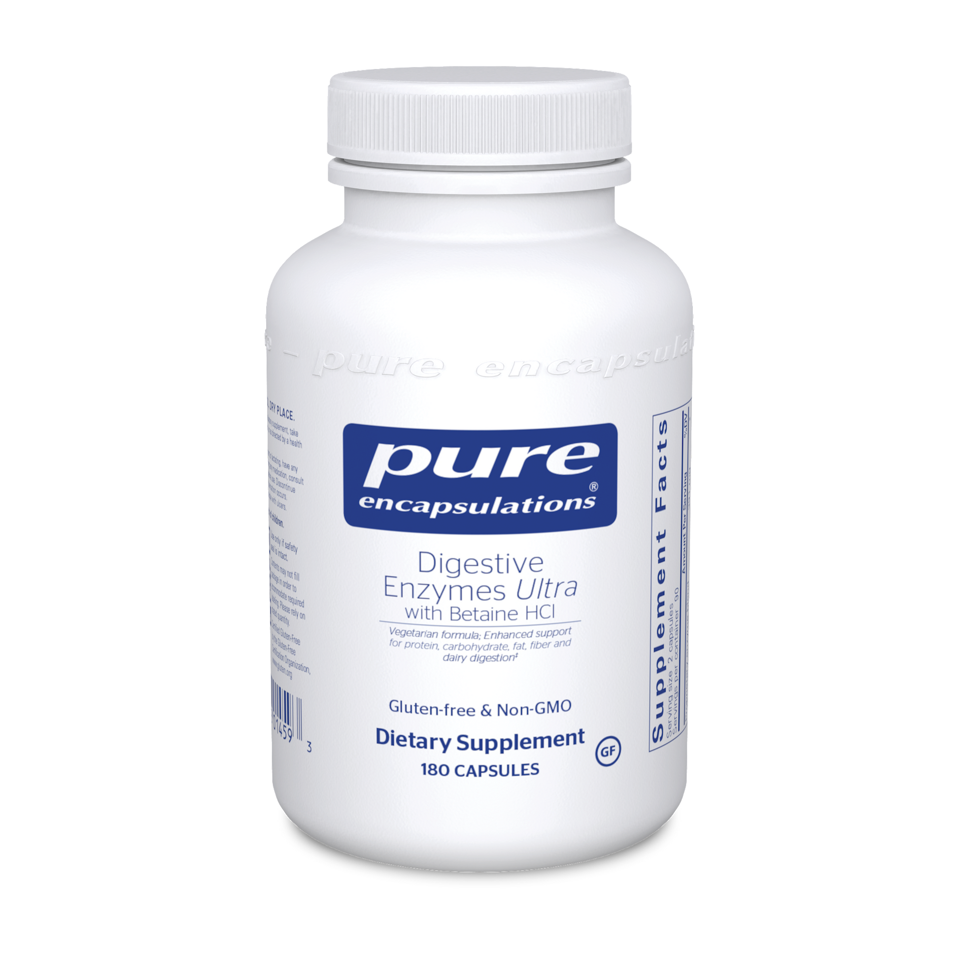 High-strength mixture of betaine HCl with vegetarian enzymes to support enhanced protein, carbohydrate, fat, fiber and dairy digestion.* Offers a broad-spectrum combination of vegetarian digestive enzymes designed to provide optimal activity across a wide pH range* Supports optimal gastric pH with betaine HCl, important for the enhanced digestion of protein and other nutrients to support daily wellness and neurotransmitter synthesis* Facilitates the normal breakdown of proteins, peptides, fats, polysaccharides and disaccharides* Blend of vegetarian digestive enzymes to support digestion* Promotes enhanced nutrient bioavailability and absorption* Enhanced digestion aid with Betaine HCI* Made with hypoallergenic, vegetarian ingredients
