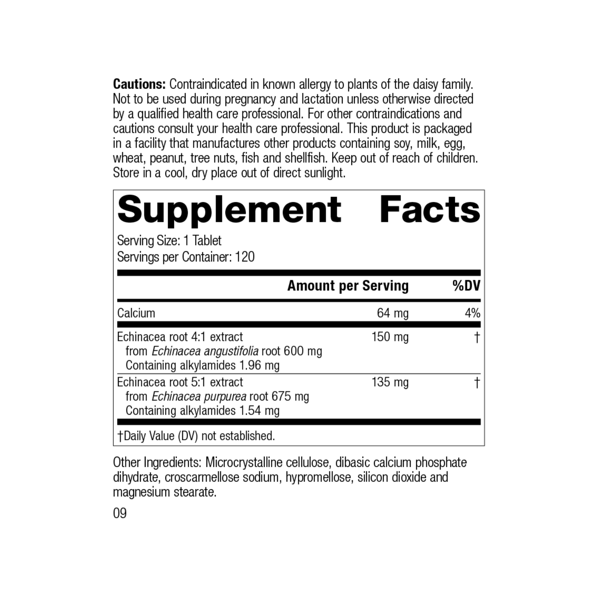 The blending of two plant species ensures that the specific caffeic acid derivatives (cichoric acid, echinacoside, cynarin) and the lipophilic components (especially alkylamides) are present in appropriate quantities. This product contains a total of 4.1 mg of alkylamides per tablet to ensure optimal strength and quality.