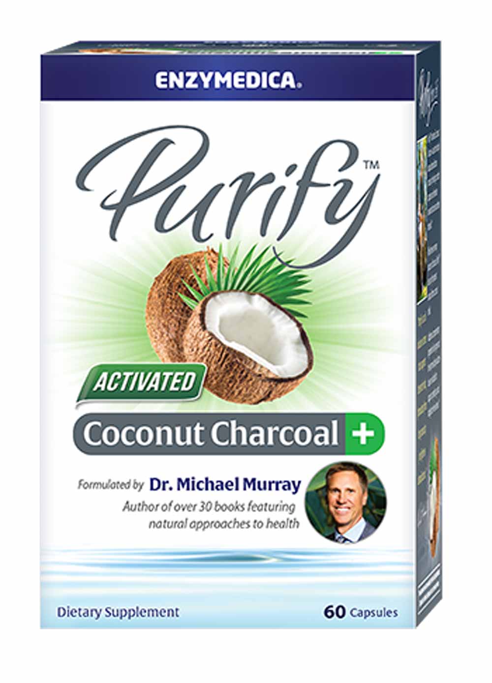 - Enzymedica Purify Activated Coconut Charcoal+ assists the body's natural detoxification process by helping to both capture and eliminate unwanted toxins and other material.*