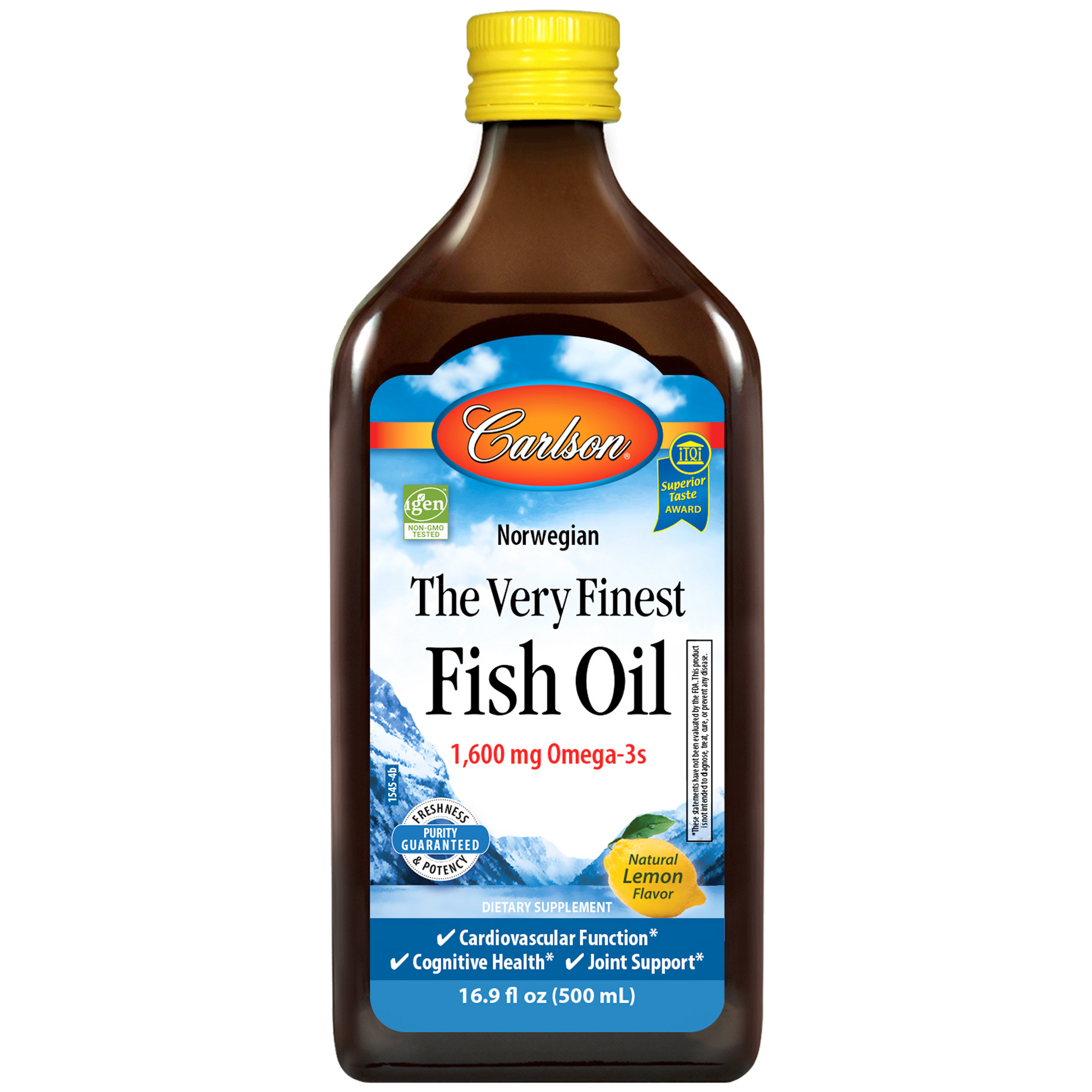 The Very Finest Fish Oil, Special Edition, in lemon flavor has received numerous awards for its taste and quality. To ensure maximum freshness, The Very Finest Fish Oil is closely managed from sea to store. Carlson Labs sources the highest quality, deep, cold-water fish using traditional, sustainable methods. The Very Finest Fish Oil is then bottled with a touch of vitamin E and is given a nitrogen flush to remove oxygen and to help prevent oxidation. Each teaspoon of The Very Finest Fish Oil provides 1,600 mg of omega-3s, including EPA and DHA, which support heart, brain, vision, and joint health.* Like all Carlson omega-3s freshness, potency, and purity are guaranteed. Promotes cardiovascular, cognitive, and joint function* 1,600 mg of omega-3s per teaspoonful | Award-winning lemon flavor Wild caught and sustainably sourced | Bottled in Norway IFOS Certified | Tested by an FDA-registered laboratory Freshness, potency, and purity guaranteed
