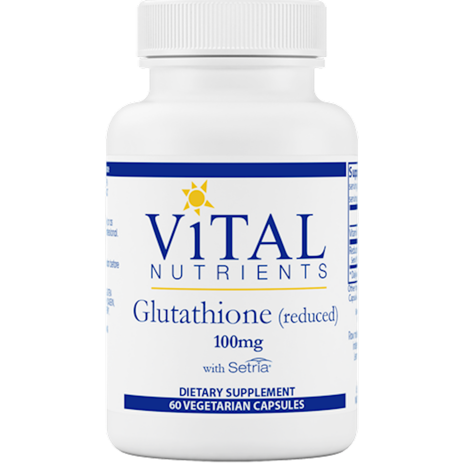 Promotes normal detoxification in the liver* Supports normal cell growth* Important part of body's natural antioxidant system* Glutathione (reduced) is the major detoxification molecule found in every cell of the body.* Reduced Glutathione encourages the normal growth of cells and is an important part of the antioxidant system of the body.* It is essential in helping promote normal detoxification in the liver.* Vital Nutrients uses Setria Glutathione, a patented ingredient used in clinical research that measured absorption and demonstrated a positive correlation between the dose and duration of oral Setria with increased glutathione levels in red blood cells, plasma, lymphocytes and buccal cells inside the mouth.*