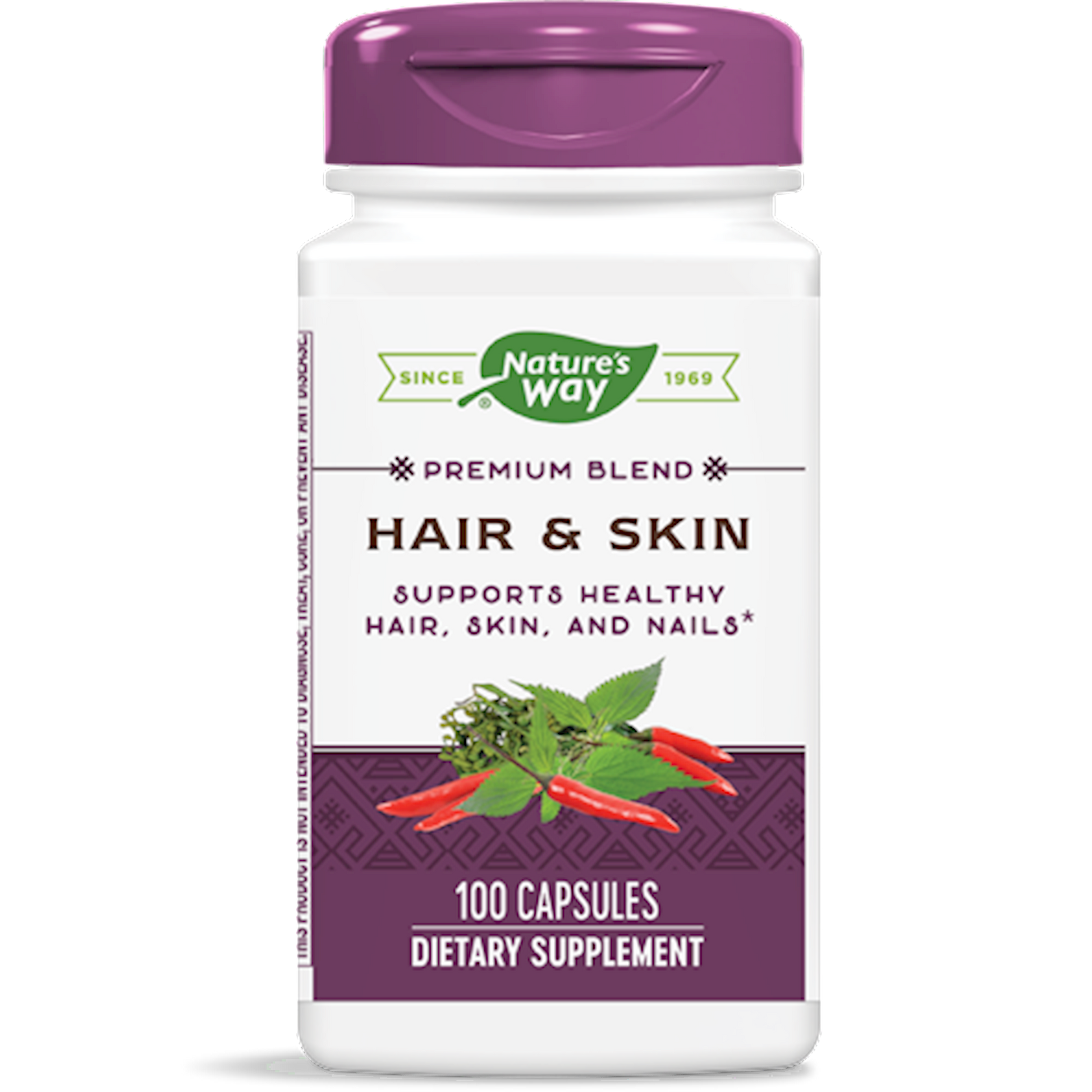 Nature's Way Hair & Skin formula is a specially blend of herbs like cayenne, fo-ti, kelp, and horsetail, with enzymes and other nutrients to help support healthy hair, skin, and nails.*