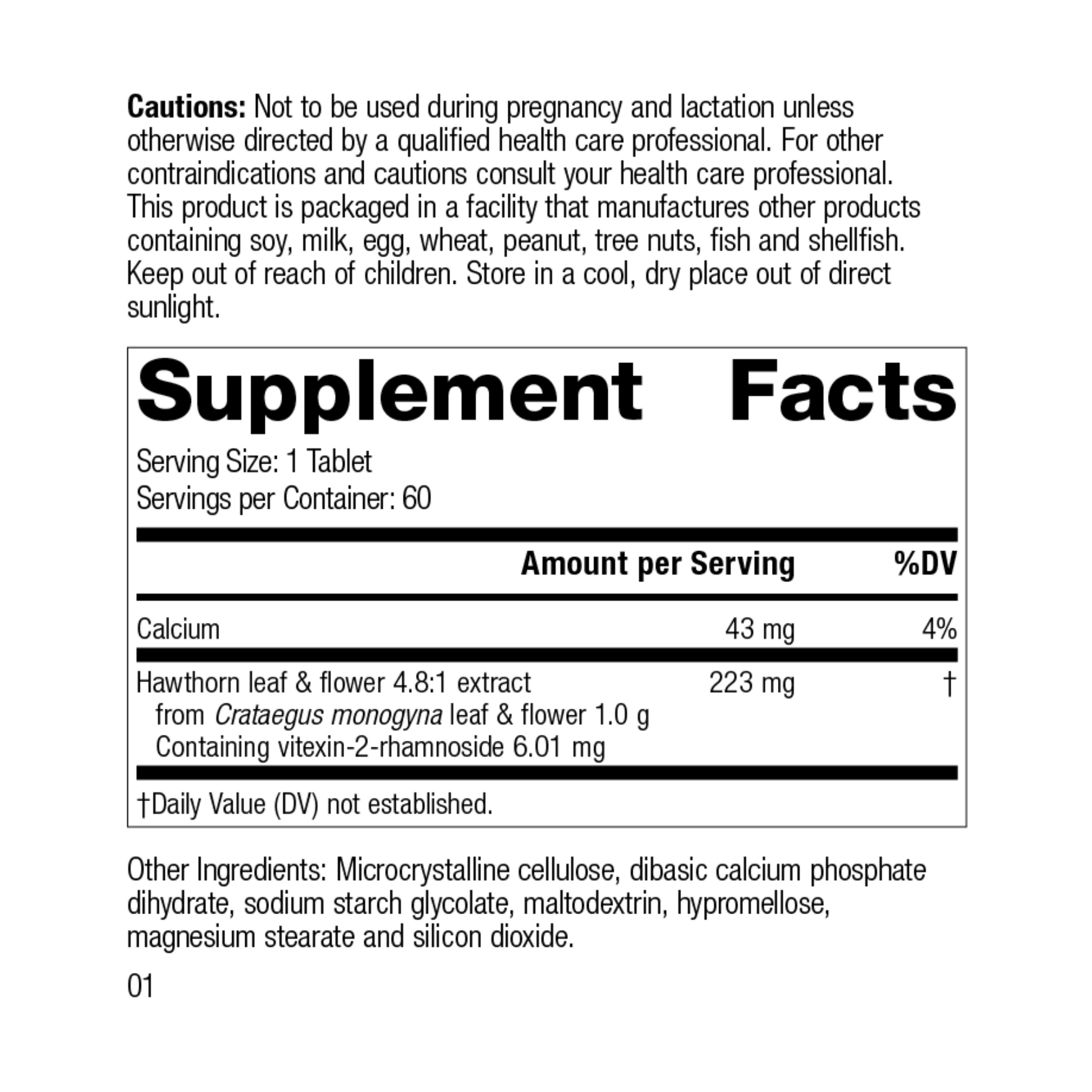 Hawthorn contains oligomeric procyanidins, flavonoids (including vitexin-2-rhamnoside) and other compounds. This product is standardized to contain 6.01 mg of vitexin-2-rhamnoside per tablet to ensure optimal strength and quality.
