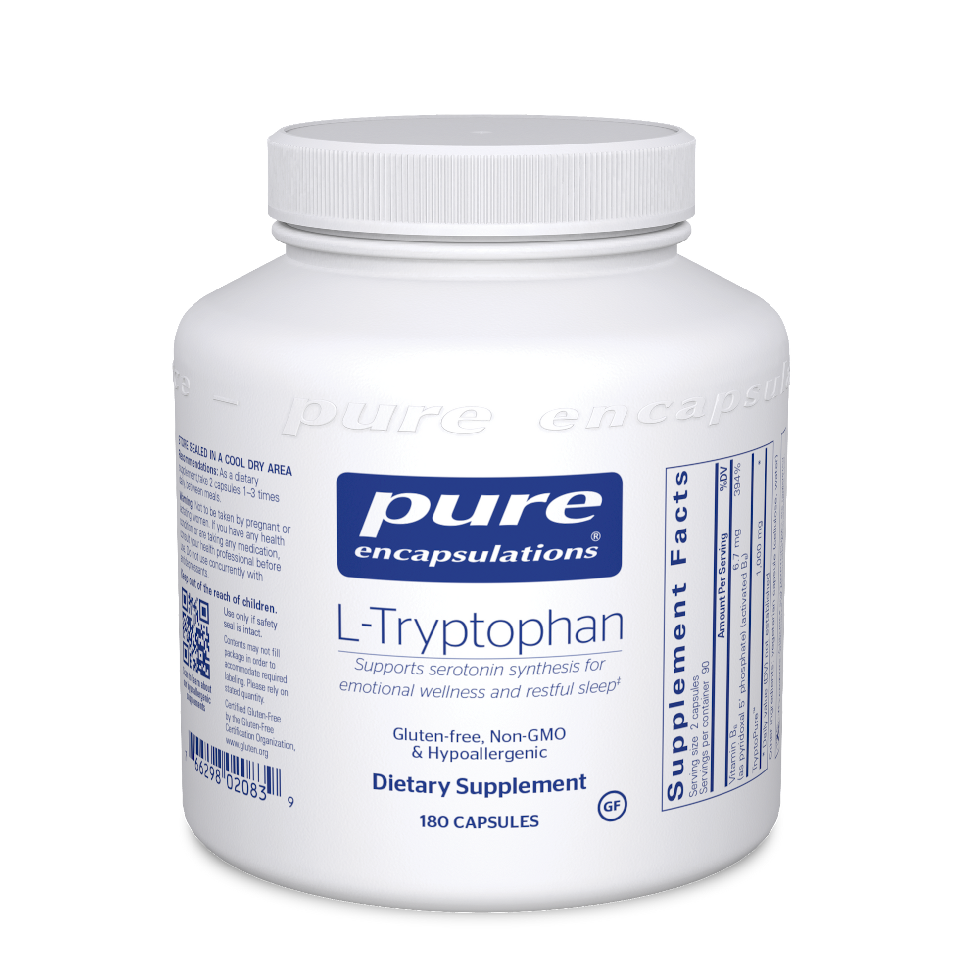The essential amino acid l-tryptophan is a serotonin precursor. Research indicates that l-tryptophan supplementation may support emotional well-being and restful sleep. In a double-blind, placebo-controlled study, l-tryptophan supported healthy emotional processing and promoted positive outlook in women.