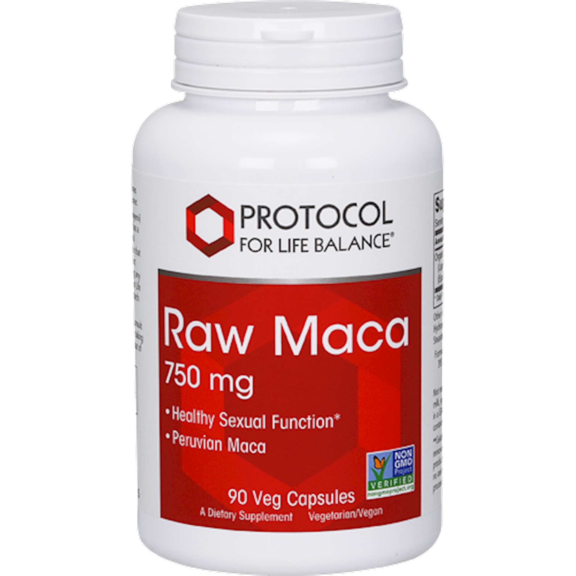 The herb maca (Lepidium meyenii) is native to the Andes region of Peru, where it has a long history of use both as a food and a general energy tonic.* Modern scientific studies indicate that natural constituents in maca may help to support healthy sexual activity in males, without exerting any direct effect on endocrine function.* Protocol for Life Balance Raw Maca is gelatinized to remove starch for a more concentrated product. Healthy Sexual Function* Peruvian Maca