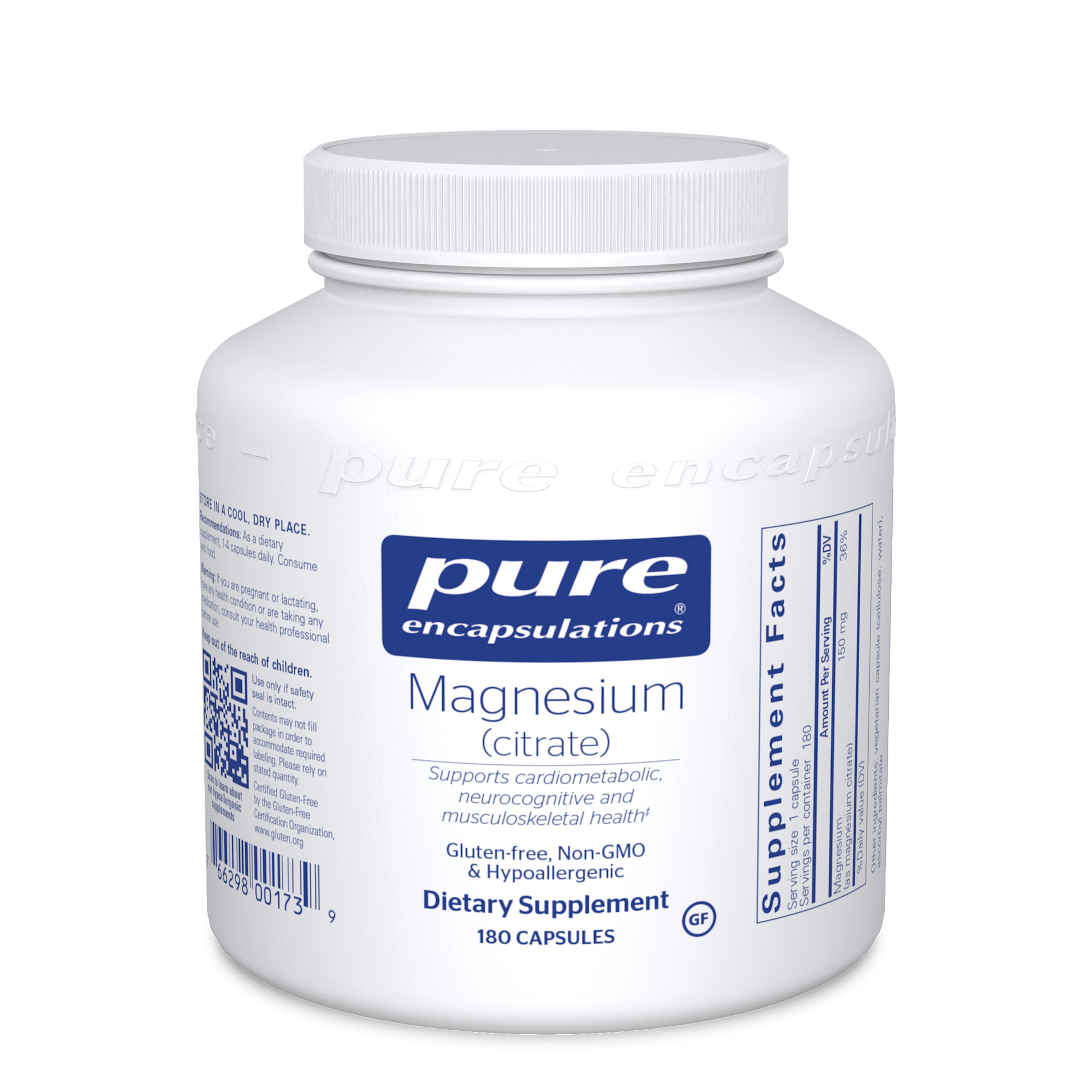 Serving Size: 1 Vegetable Capsule Servings Per Container: 180 Disclaimer Amount Per Serving Magnesium (as magnesium citrate) 150 mg 36% Other ingredients: Vegetarian capsule (cellulose, water), Ascorbyl palmitate