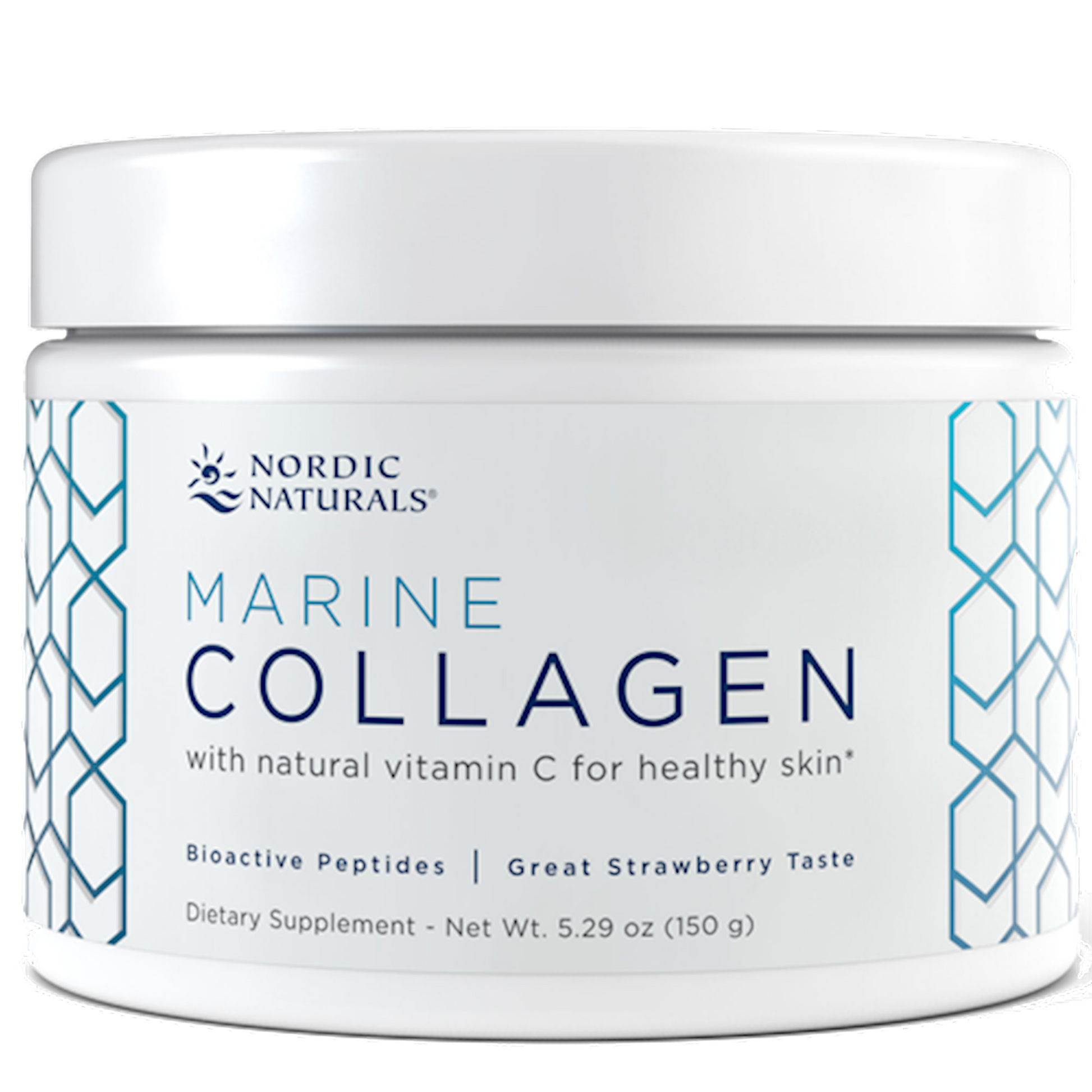Formulated for optimal absorption, Nordic Naturals Marine Collagen delivers small, hydrolyzed collagen peptides and vitamin C to help stimulate and support collagen-producing cells throughout the body.* Specifically formulated for efficient absorption, Nordic Naturals Marine Collagen powder delivers small, hydrolyzed collagen peptides to help stimulate and maintain the bodys own collagen-producing cells.* These short-chain, type I collagen peptides are combined with vitamin C from acerola fruit to provide collaborative support for skin.* With a mild strawberry flavor and no fishy taste, it's a rejuvenating addition to your favorite beverage. 4200 mg bioactive collagen peptides Type I collagen from sustainable, wild-caught Arctic cod For healthy skin* Helps stimulate collagen-producing cells throughout the body* With natural vitamin C to aid normal collagen formation and provide antioxidant support* A rejuvenating addition to warm or cold beverages or smoothies