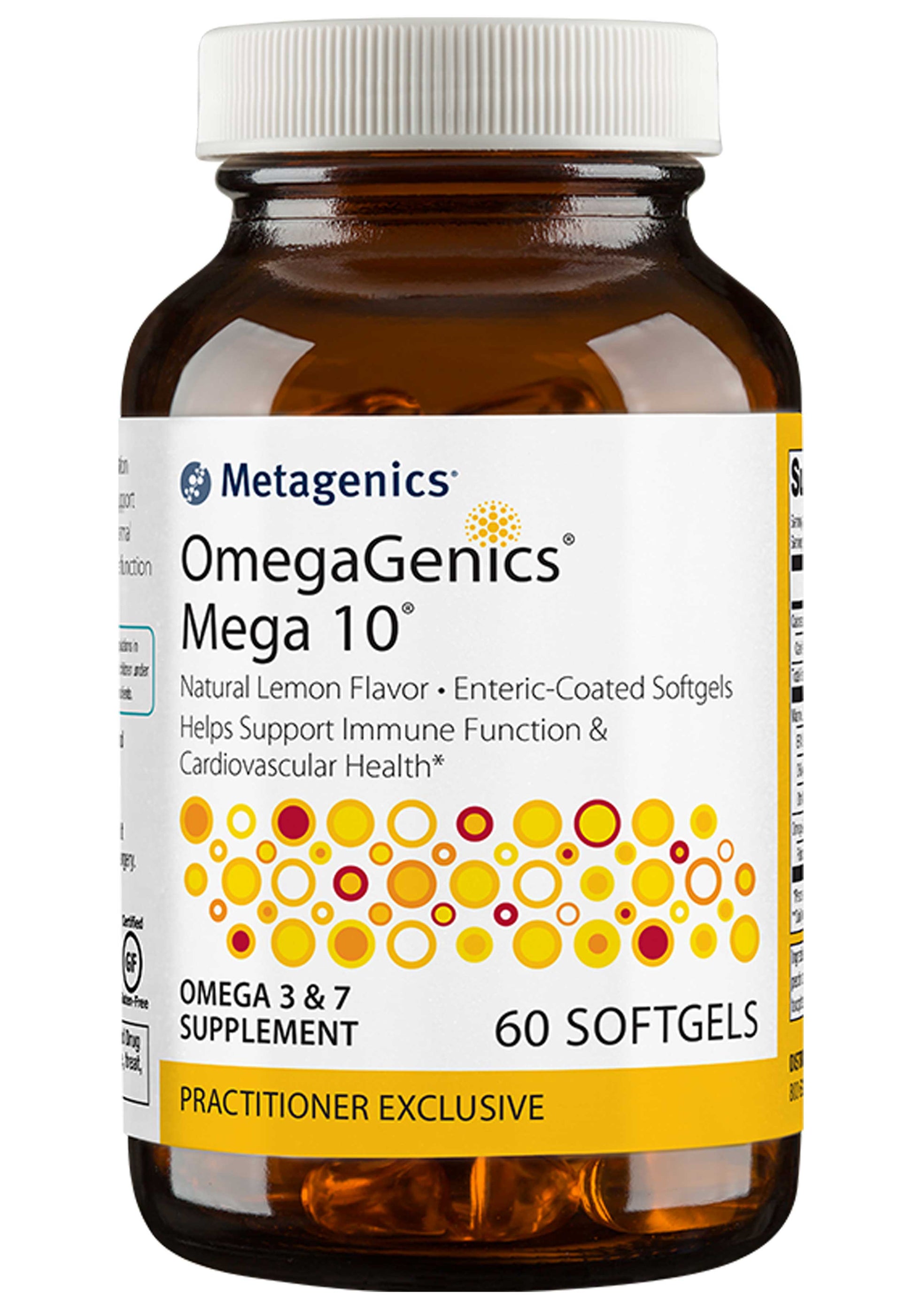 - Metagenics OmegaGenics® Mega 10™ is a more complete omega formula for heart health.