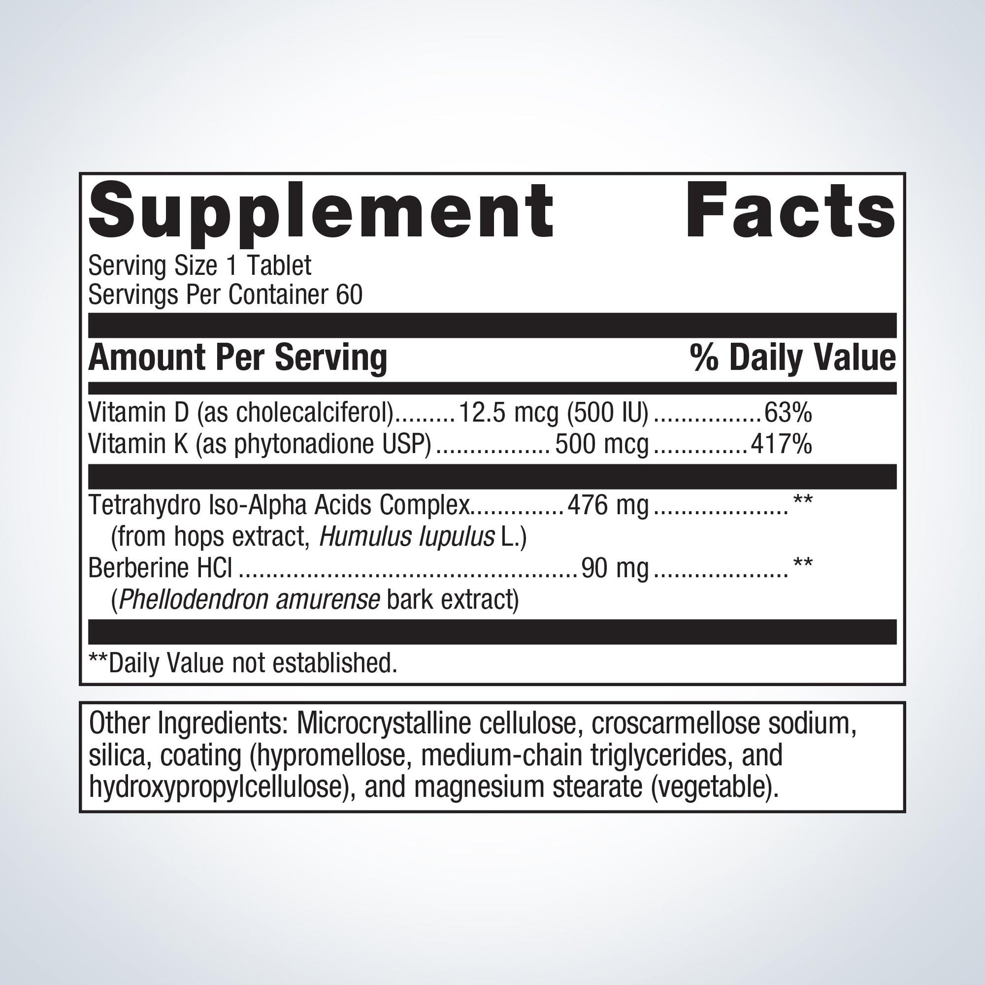Reduced Iso-Alpha Acids Complex (from hops extract, Humulus lupulus L.) .....370 mg .....*