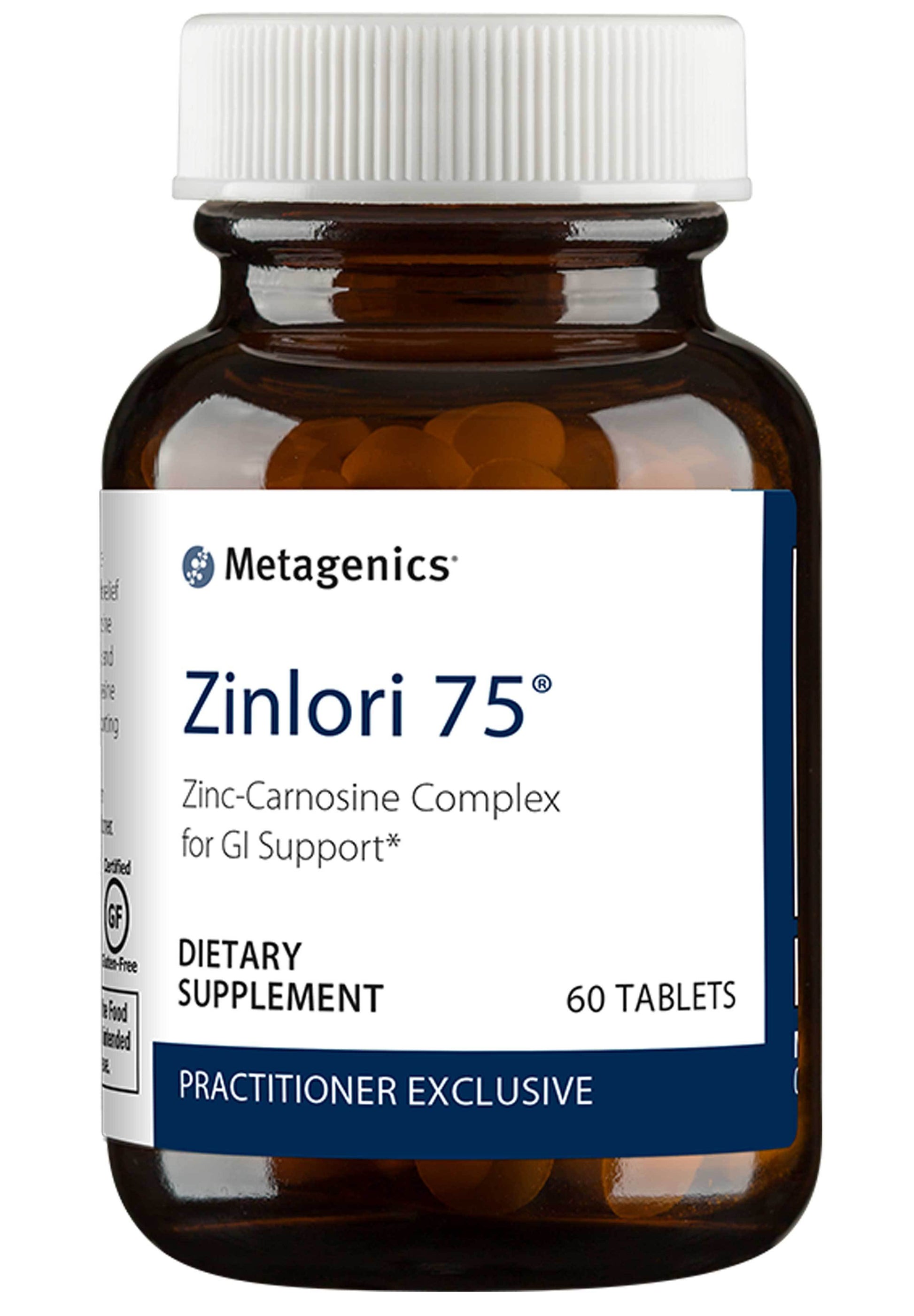 - Metagenics Zinlori 75 contains a high potency, zinc-carnosine complex formulated to provide relief of stomach discomfort.