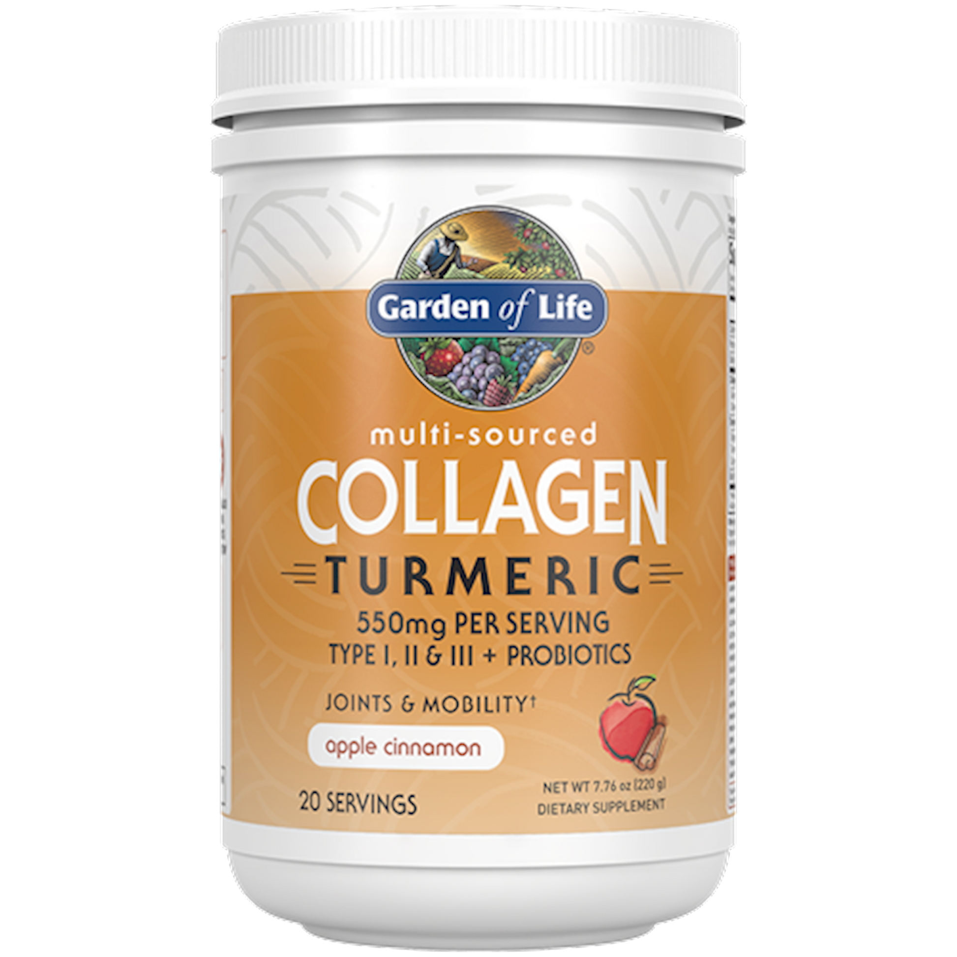 Serving Size: 1 Scoop Servings Per Container: 20 Disclaimer Amount Per Serving Calories 50 Protein 9 g Sodium 100 mg Collagen Type I, II, & III Blend: 10 g Grass Fed Bovine Hide Collagen Peptides UC-II Chicken Cartilage with Undenatured Type II Collagen Turmeric Blend: 563 mg Organic Fermented Turmeric Root Organic Turmeric Root Extract (standardized to 95% Curcuminoids, 50mg) Organic Black Pepper Fruit Lactobacillus plantarum (1.5 Billion CFU) 10 mg Other ingredients: Organic Apple Flavor, Organic Cinnamon, Organic Stevia Extract (leaf), Potassium Chloride (stabilizer for chicken collagen)