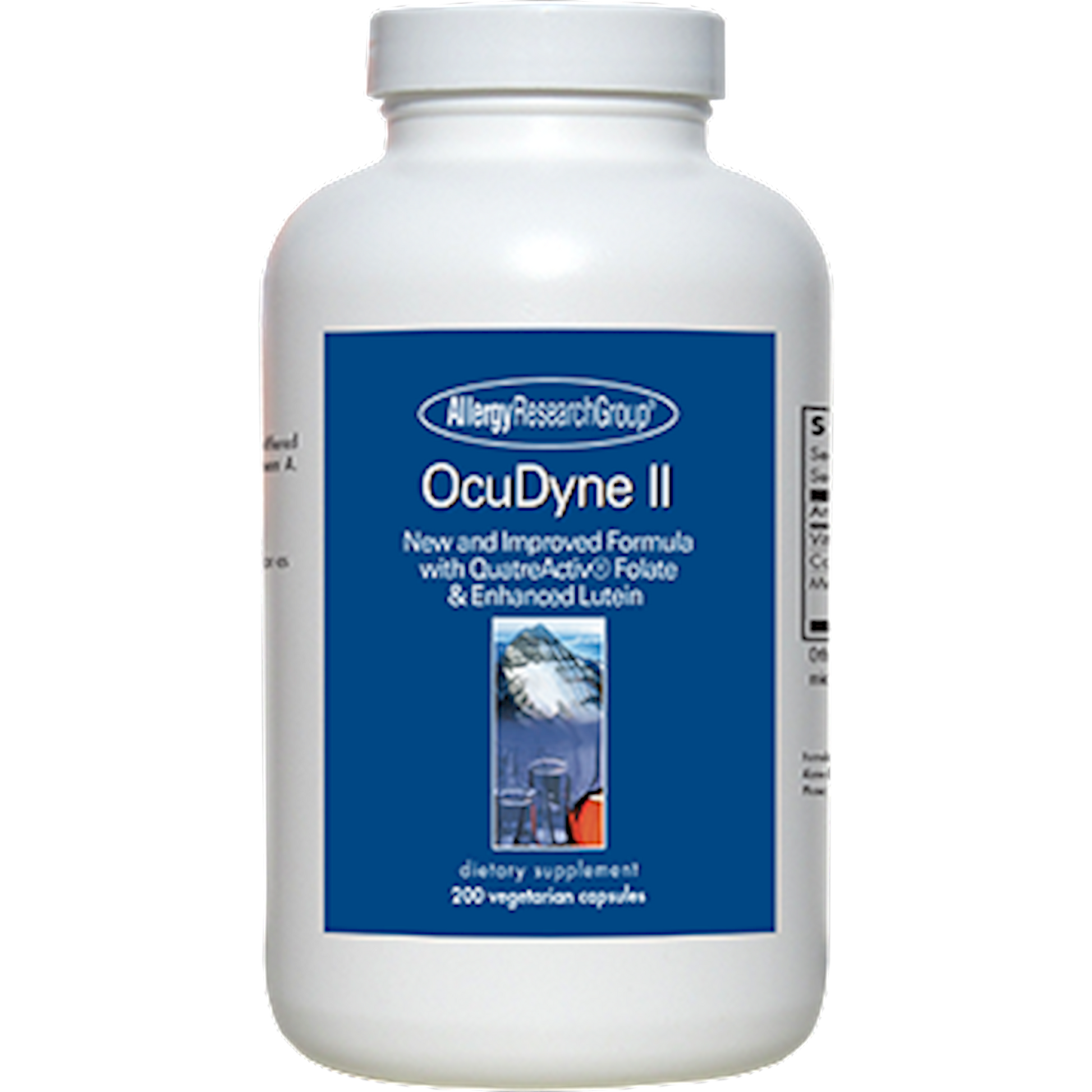 OcuDyne II was originally formulated for Allergy Research Group by Jonathan Wright, M.D. and Alan R. Gaby, M.D. OcuDyne II includes QuatreActiv Folate (Quatrefolic, the glucosamine salt of 5-MTHF), gamma-tocopherdol, tocotrienols, vitamin D, alpha-lipoic acid and lycopene, as well as antioxidants, key amino acids, minerals, bioflavonoids such as quercetin, enhanced lutein and zeaxanthin, and extracts of ginkgo and bilberry. In addition to eye support, it may be used as a multivitamin, multimineral formula.