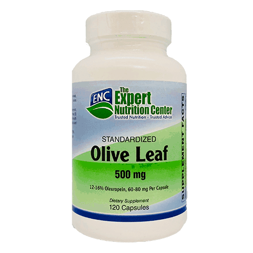 The Expert Nutrition Center Olive Leaf Extract contains 500 mg of pure olive leaf extract standardized to 12-16% oleurpein.