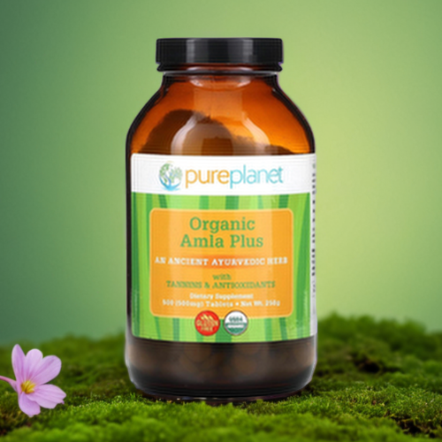 The amla berry, or Indian gooseberry, contains tannins and is one of the richest sources of Vitamin C. Revered in Ayurvedic medicine, amla berry is 12x more absorbable than synthetic Vitamin C and is also used as a digestive aid. To maximize absorption and support high protein diets, Pure Planet combined this potent super fruit with organic spirulina. Available in tablet and powder form.