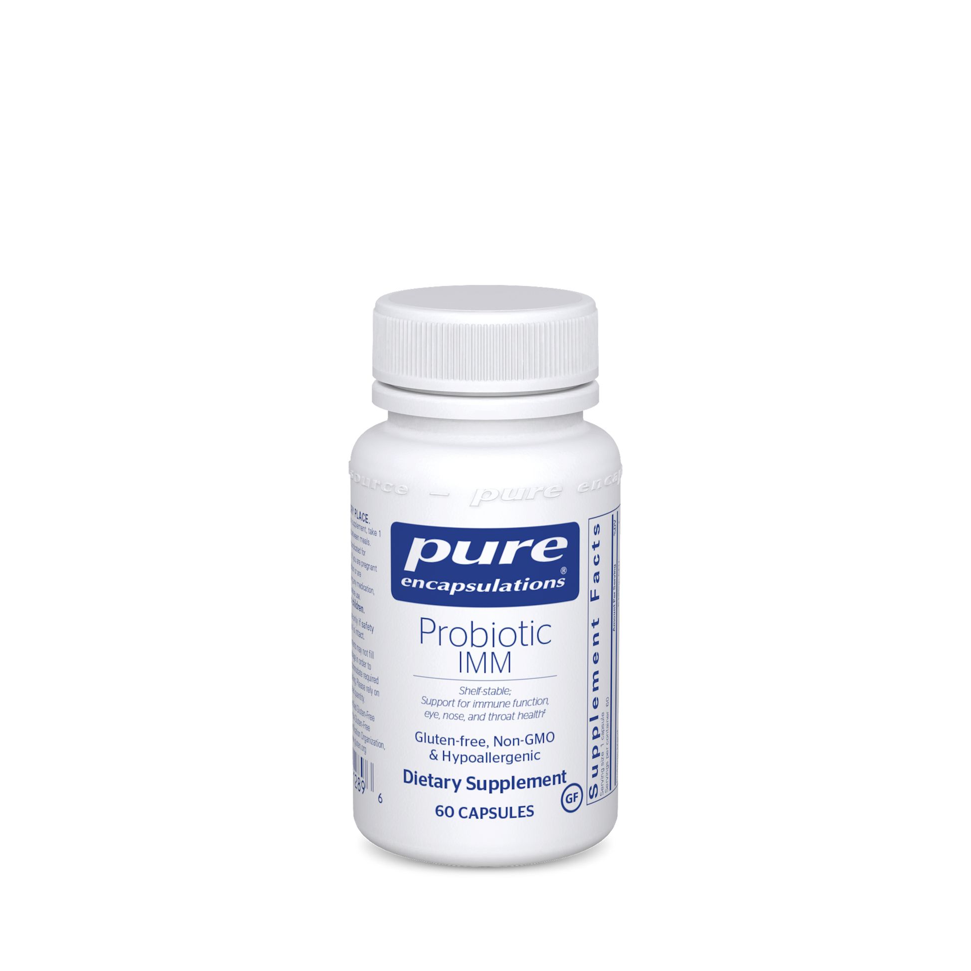 Shelf-stable probiotic blend to support immune function and maintain eye, nose and throat health* A recent meta-analysis involving 9 randomized controlled trials has revealed that probiotics maintain healthy immune and nasal function. Probiotic IMM provides 5 billion CFU per serving of the beneficial bacteria Bifidobacterium longum BB536, Bifidobacterium lactis, Lactobacillus acidophilus, Lactobacillus casei and Lactobacillus plantarum. These strains provide particular support for a healthy immune response and immunoglobulin function. B. longum BB536 is a shelf stable, top-selling probiotic in Japan, supported in the literature by over 25 human trials and 30 animal studies. Double-blind, placebo-controlled trials indicate that B. longum BB536 supplementation maintains G.I. bacteria balance, supporting immune function and maintaining eye, nose and throat health. In another randomized double-blind, placebo-controlled trial, L. acidophilus and B. lactis showed support for nasal function and maintained healthy eosinophil activity within the nasal lining. Research involving L. casei and L. plantarum also suggests that these strains maintain healthy cytokine production, IgE function and mast cell integrity.* Probiotic IMM is designed to support immune health and maintain normal eye, nasal and throat function, including healthy cytokine production, IgE function and mast cell integrity.* Supports immune function* Maintains eye, nose and throat health* Made with vegetarian ingredients