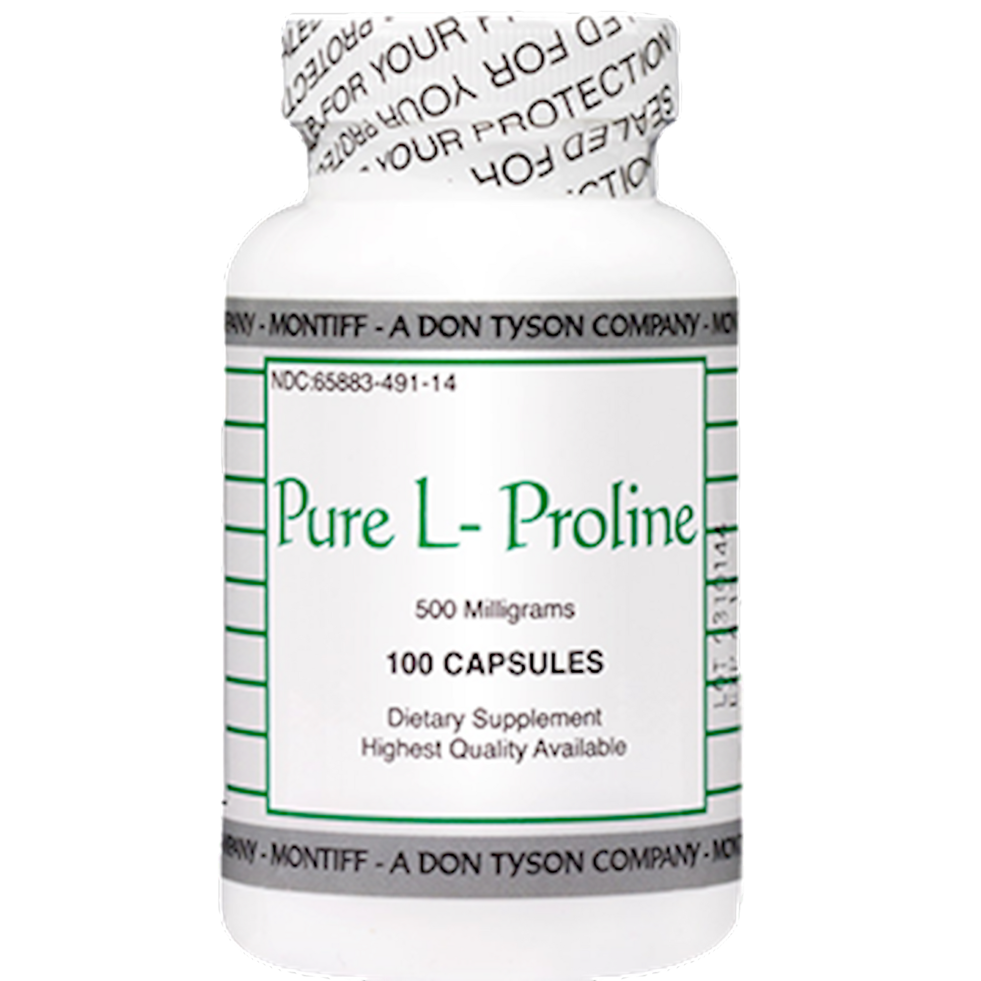 Serving Size: 1 Capsule Servings Per Container: 100 Disclaimer Amount Per Serving L-Proline 500 mg Other ingredients: Gelatin, may also contain microcrystalline cellulose and magnesium stearate