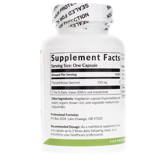 Pure Thyro 150 mg is a premium thyroid support supplement designed to promote a healthy thyroid function, balance hormone levels, and support overall well-being. This powerful formula is part of the Professional Formulas line of glandulars, made with high-quality ingredients and manufactured in a GMP-certified facility to ensure potency and purity.