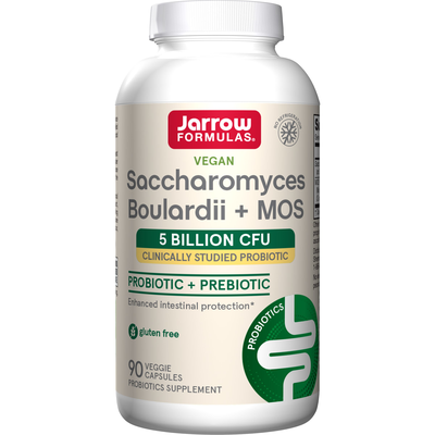 Saccharomyces Boulardii+MOS contains the probiotic yeast Saccharomyces boulardii, which survives passage through stomach acid and delivers its benefits to the intestinal tract.* This strain helps support and maintain a normal intestinal microflora.* It also works to help restore the normal intestinal microflora when possible disruptions may occur, such as during travel or the intake of certain medications.* MOS (MannanOligoSaccharides) is an oligosaccharide from the cell walls of S. cerevisiae that can discourage bacteria from adhering to the epithelial cells and reduce their proliferation.*