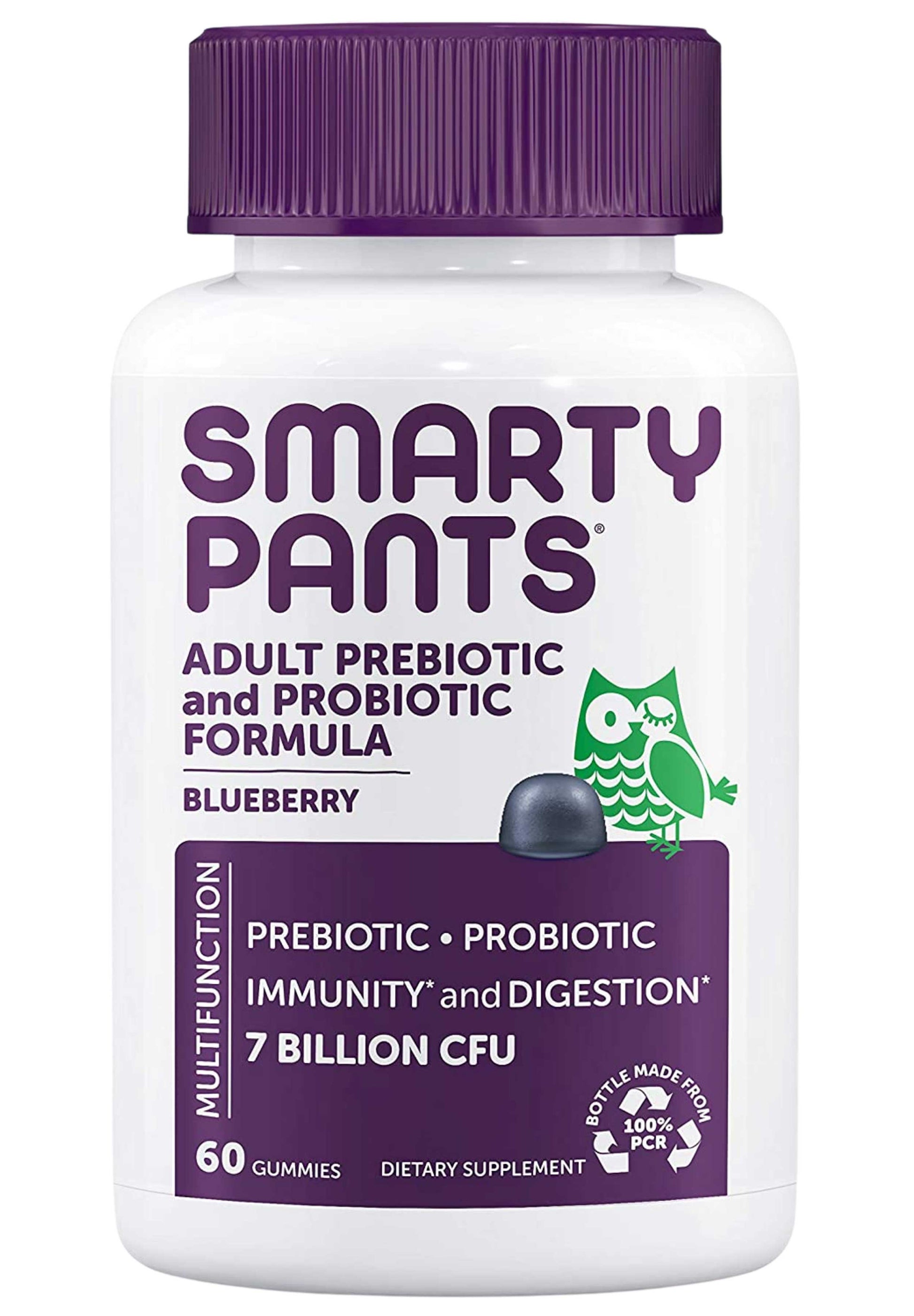 - SmartyPants Adult Probiotic, Prebiotic Blueberry combines both prebiotic and probiotic bacteria to deliver optimal digestive and immune support* - all in one yummy gummy. Our premium ingredients are AVA-Certified Vegan, non-GMO and free of any synthetic colors or artificial flavors.