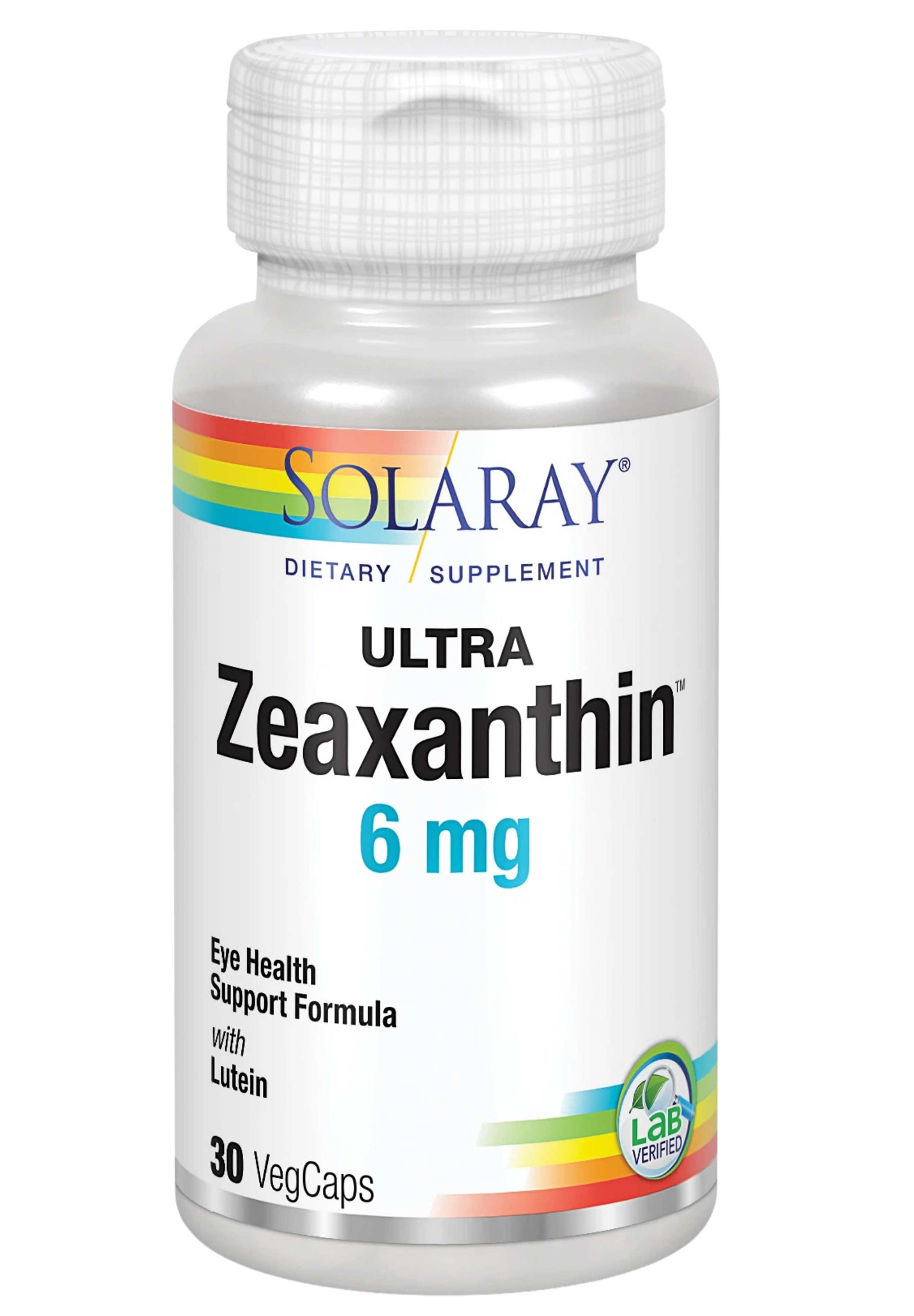 - Solaray Ultra Zeaxanthin complex provides 6 mg zeaxanthin and 3 mg lutein from sunny marigold flowers.