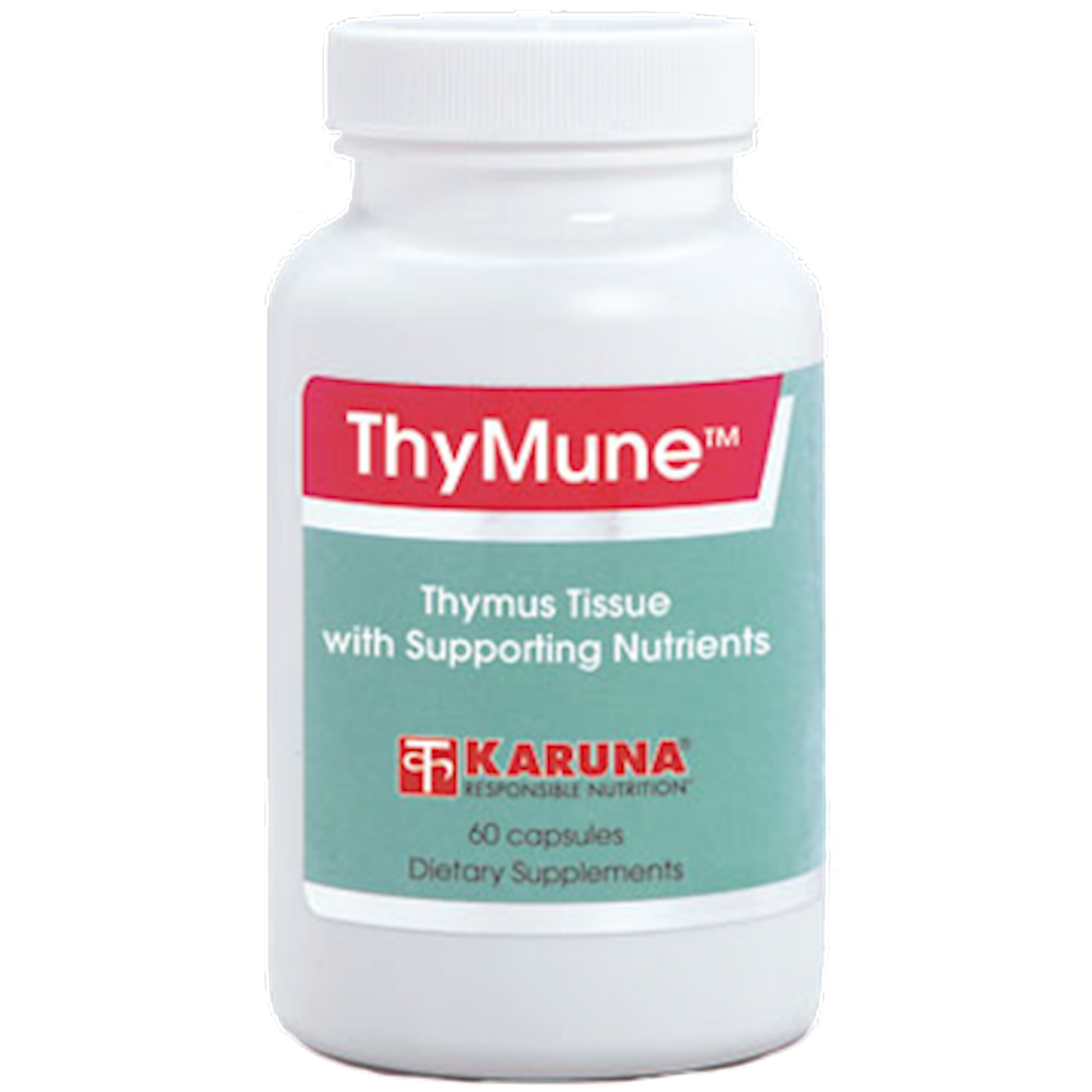 The thymus gland is critical to immuno-competence. The thymus secretes a family of polypeptide hormones that act on the structures and functions of the cellular immune apparatus, such as the maturation of precursors into fully competent T-cells. Age-related atrophy results in reduced thymus activity in later years. ThyMune supplies thymus tissue polypeptides along with vitamins, minerals, phytonutrients, and Echinacea extract for a broad spectrum approach to immune system support.*