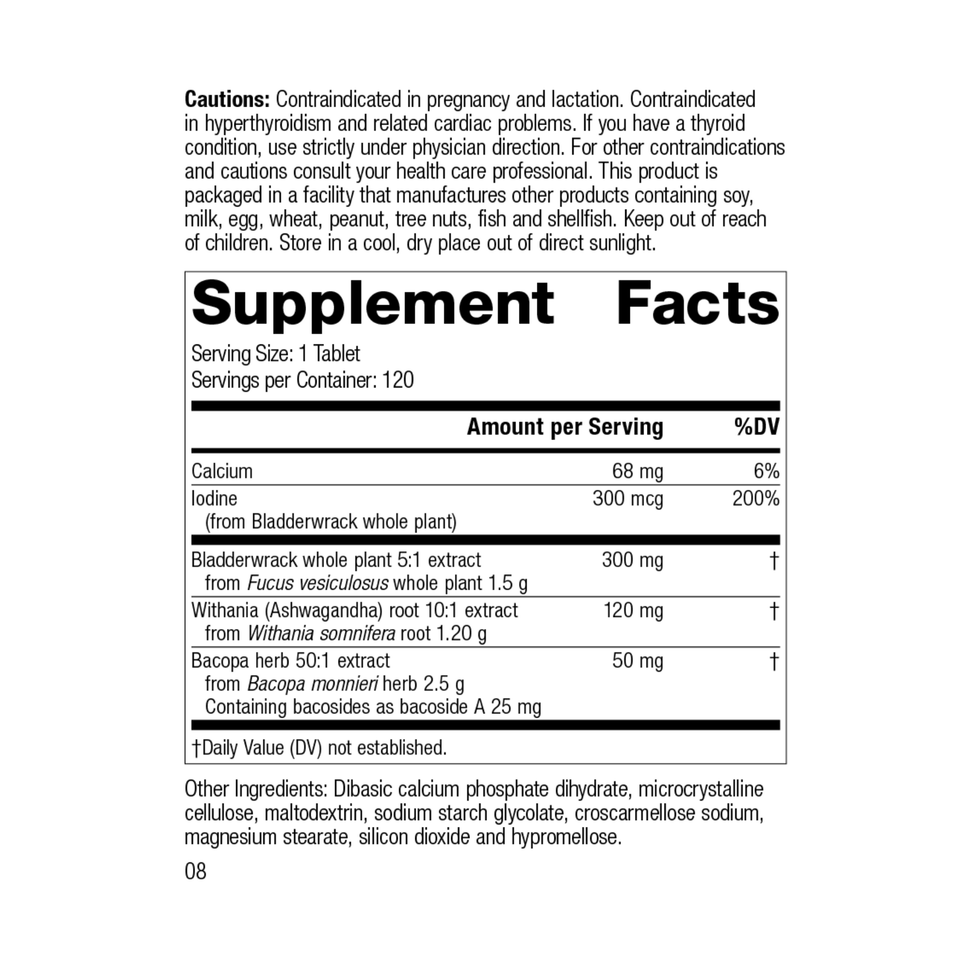Thyroid Complex contains Bladderwrack, Ashwagandha and Bacopa to support healthy thyroid function. These herbs have been traditionally used in herbal preparations to: