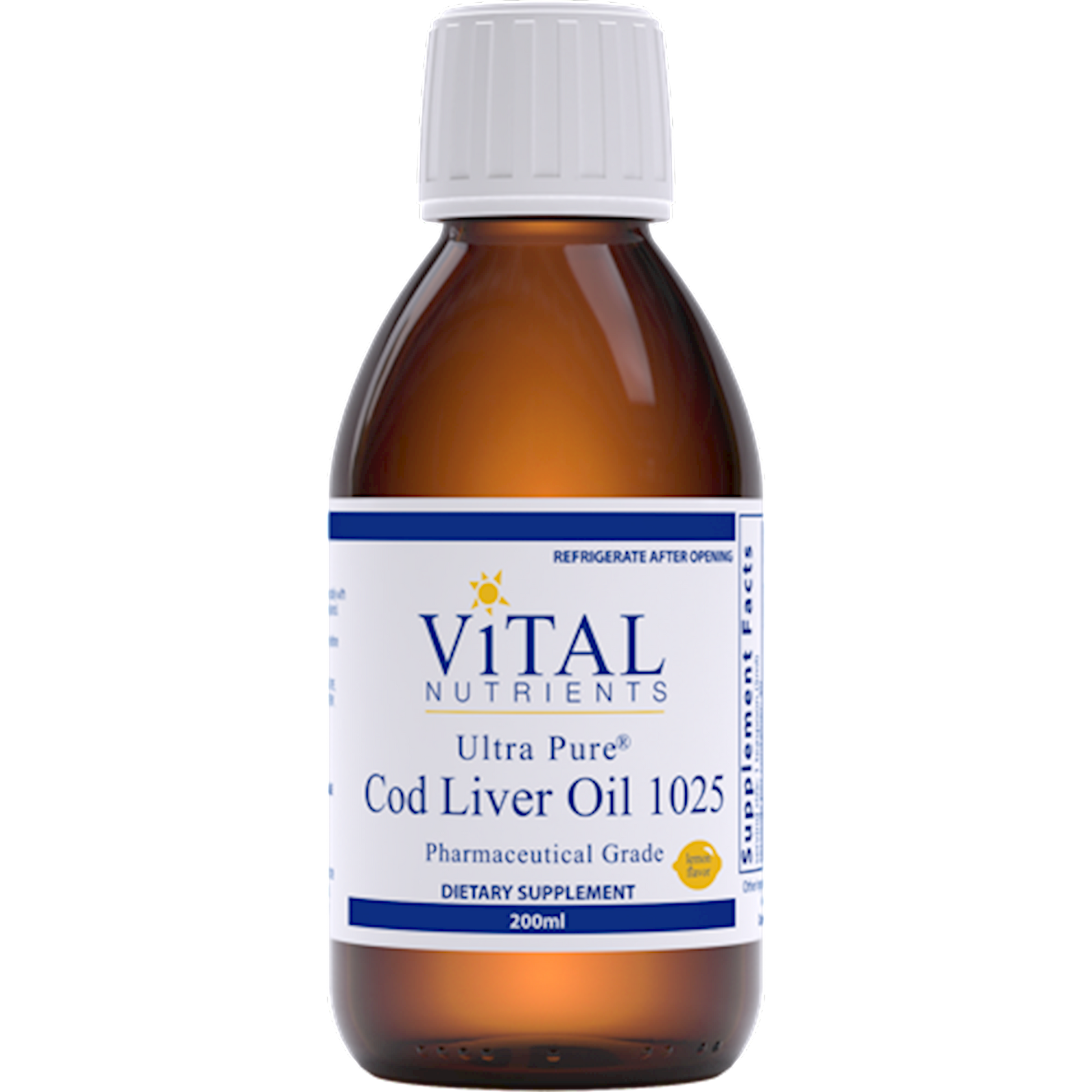 Contains Omega 3 fatty acids, and Vitamin A and D Supports healthy brain function* Promotes skin and joint health* Ultra Pure Cod Liver Oil 1025 contains Omega 3 essential fatty acids, which promote healthy brain development and function and may help support learning and achievement in adults and children.* The typical Western diet is known to be widely deficient in omega-3 fatty acids. Fish oils such as cod liver oil are widely recommended to help maintain and support cardiovascular health, joint mobility, memory, cognitive function and neurological health.* Vital Nutrients 100% pure Norwegian cod liver oil also contains naturally occurring Vitamins A and D, fat soluble essential nutrients which help support positive mood, immune function and healthy skin*.