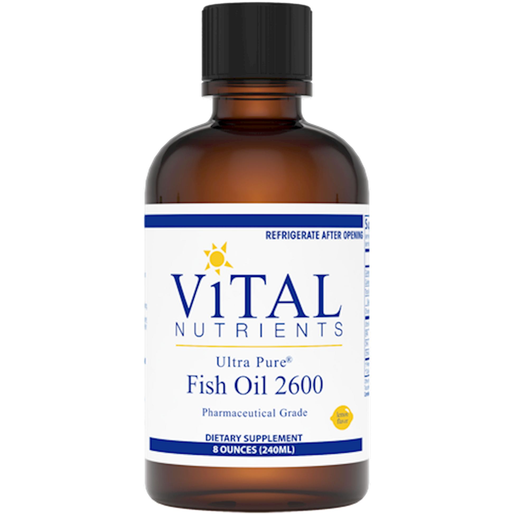 Ultra Pure® Fish Oil 2600 in liquid form provides an extremely high concentration of EPA and DHA for people who find it difficult to take several softgels per day or swallow large pills.* Ultra Pure Fish Oil 2600 provides protection and maintenance of normal function, fluidity and health of cell membranes.* Fish oil contains the essential fats EPA and DHA.* These fats help maintain and support soft tissue and connective tissue.* Fish oil helps promote cartilage and joint function and relieves mild mood changes and cramps associated with the menstrual cycle.* Fish oil helps maintain platelet aggregation levels that are already in the normal range.* Large doses of fish oil maintain healthy neural and cardiovascular function.* Ultra Pure Fish Oil has a pleasant natural lemon flavor.*