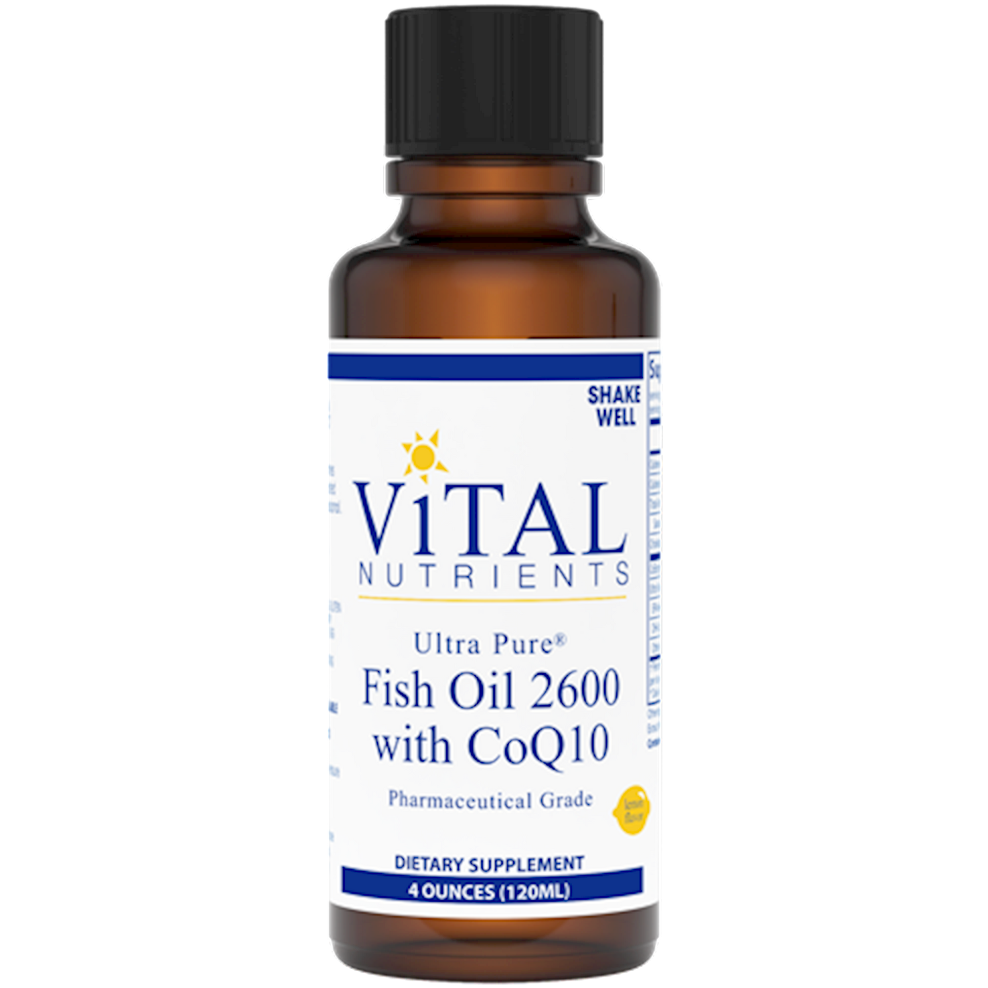 High concentration of EPA & DHA combined with oil soluble CoQ10 Supports a healthy cardiovascular system* Promotes healthy neural function* Ultra Pure Fish Oil 2600 with CoQ10 provides 1900 mg of EPA and 400mg of DHA per seving, along with 100 mg of CoQ10.* CoQ10 is supportive to the cardiovascular system. Ultra Pure Fish Oil with CoQ10 provides support and maintenance of the normal function, fluidity and health of cell membranes.* Fish oil contains the essential fats EPA and DHA.* These fats help maintain and support soft tissue and connective tissue.* Fish oil helps maintain platelet aggregation levels that are already in the normal range.* Large doses of fish oil maintain healthy neural and cardiovascular function.* Ultra Pure Fish Oil with CoQ10 has a pleasant natural lemon flavor.*