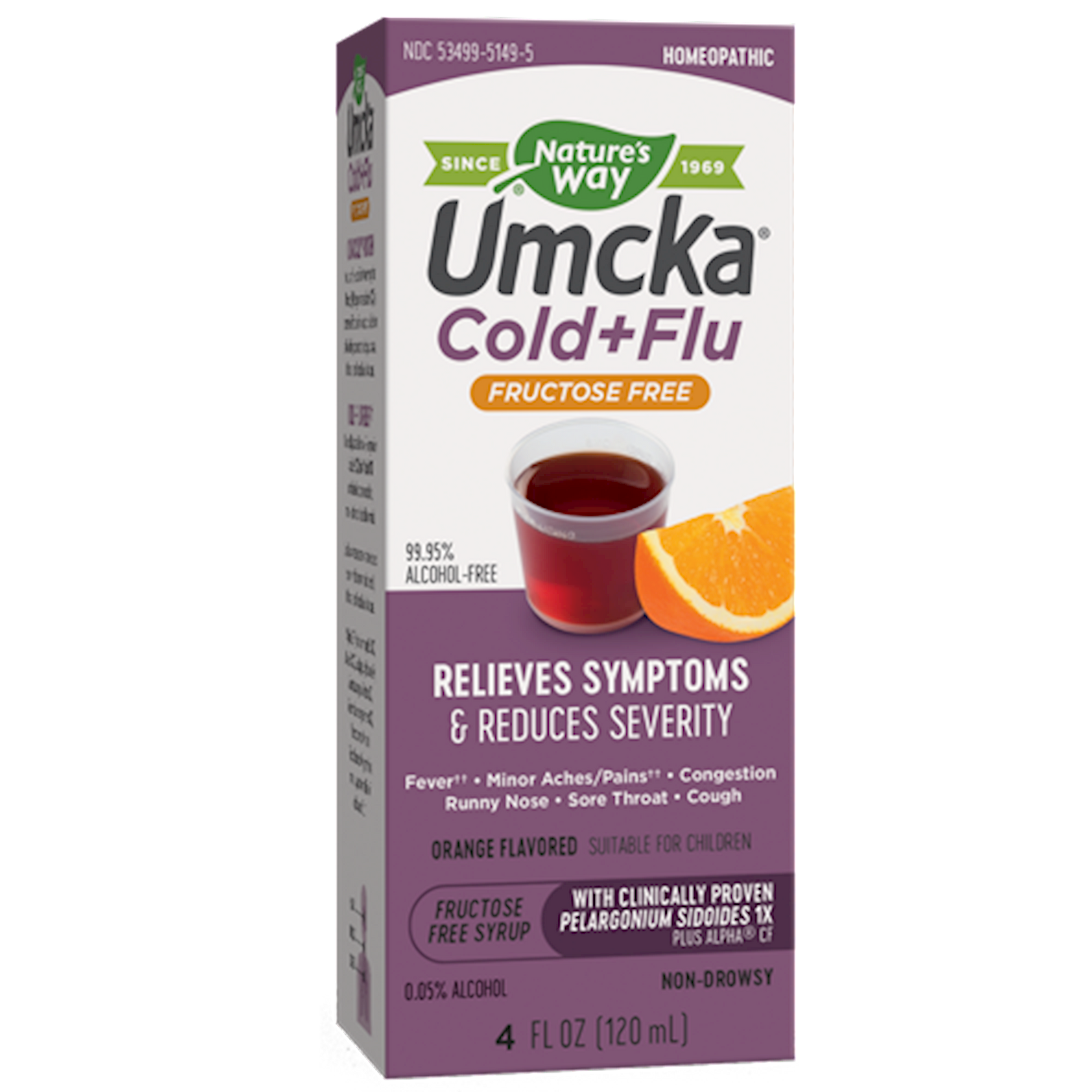 Homeopathic - Multi-action, Non-drowsy cold and flu formula Why Umcka Cold + Flu Fructose Free Clinically Proven: You can feel confident knowing that Umcka (Pelargonium sidoides 1X) is proven effective in clinical studies for alleviating common colds plus nasal, throat, and bronchial irritations. Cold and Flu Relief** Clinically tested Umcka (Pelargonium sidoides 1X) plus Alpha CF combined into one complete, multi-action cold and flu formula. Umcka shortens duration and reduces severity of common cold, nasal, throat, and bronchial irritations. Alpha CF (Aconitum napellus 4X, Bryonia 4X, Eucalyptus globulus 2X, Eupatorium perfoliatum 6X, Gelsemium sempervirens 4X, Ipecacuanha 3X, and Phosphorous 6X) provides multi-symptom relief of colds and flu**.