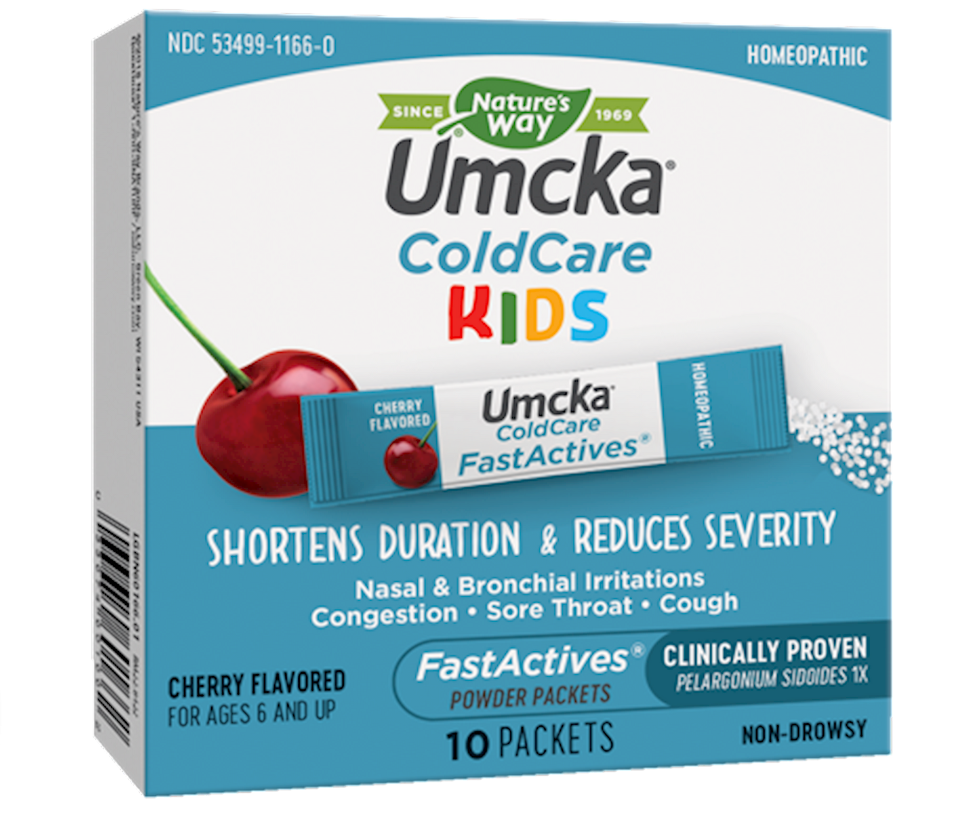 Umcka ColdCare FastActives are clinically proven to shorten the duration and reduce the severity of common cold symptoms such as nasal & bronchial irritations, congestion, sore throat, and cough. These powder packets are perfect for on-the-go, and they taste great too! Clinically Proven You can feel confident knowing that Umcka (Pelargonium sidoides 1X) is proven effective in clinical studies for alleviating common cold symptoms, plus nasal, throat and bronchial irritations. Shortens Duration Umcka (Pelargonium sidoides 1X) does more than just relieve common cold symptoms it actually speeds your recovery, which means you can get back to life faster. Reduces Severity Pelargonium sidoides 1X helps reduce the severity of your cold by relieving the symptoms associated with the common cold including congestion, cough, sore throat and hoarseness, plus nasal, throat and bronchial irritations. Rooted in History A member of the geranium family, the Umcka (Pelargonium sidoides 1X) roots have long been used to relieve respiratory ailments. We go directly to the source, like the grasslands of Southern Africa where Pelargonium sidoides 1X roots flourish, and where farmers who have tended this land for generations know firsthand the benefits of their natural environment. Because with Natures Way, you can always trust that youre getting the best herbs the earth has to offer.