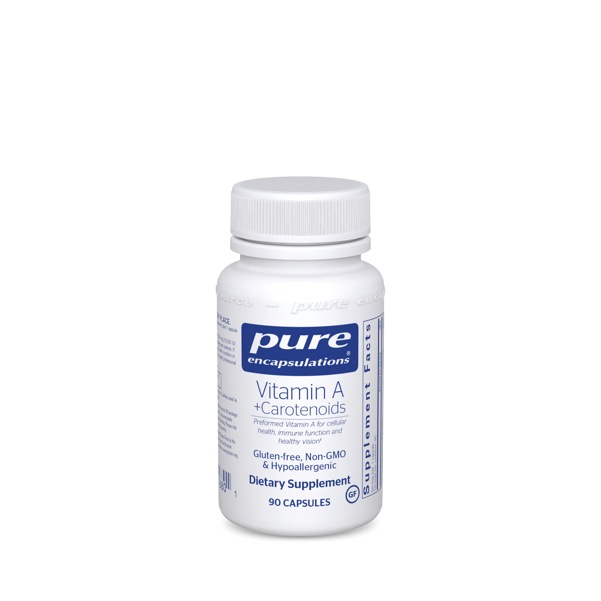 Vitamin A with lutein, zeaxanthin, and astaxanthin to support cellular, ocular and immune function, with carotenoids for retinal and macular health.* While many individuals are able to convert provitamin A carotenoids, like beta carotene, into active vitamin A, recent research has revealed that genetic variations can limit the ease of this conversion for some. Genetic variations in the enzyme BCMO1 (-Carotene 15,15'-monooxygenase 1) can decrease the conversion efficacy of carotenoids into retinal by up to 69%. Known as single nucleotide polymorphisms (SNPs), these common variations can be bypassed with dietary retinol (vitamin A). Since variations in the BCMO1 gene have also been associated with macular pigment density, this formula includes a blend of lutein, zeaxanthin and astaxanthin to promote macular health. Lutein and zeaxanthin are the two carotenoids found in macular pigment; as such, they act to support the integrity and density of the pigment, as well as optical lens health. Astaxanthin offers support for antioxidant defenses to protect retinal health.* Supports cellular, ocular and immune health* Promotes optical lens health*