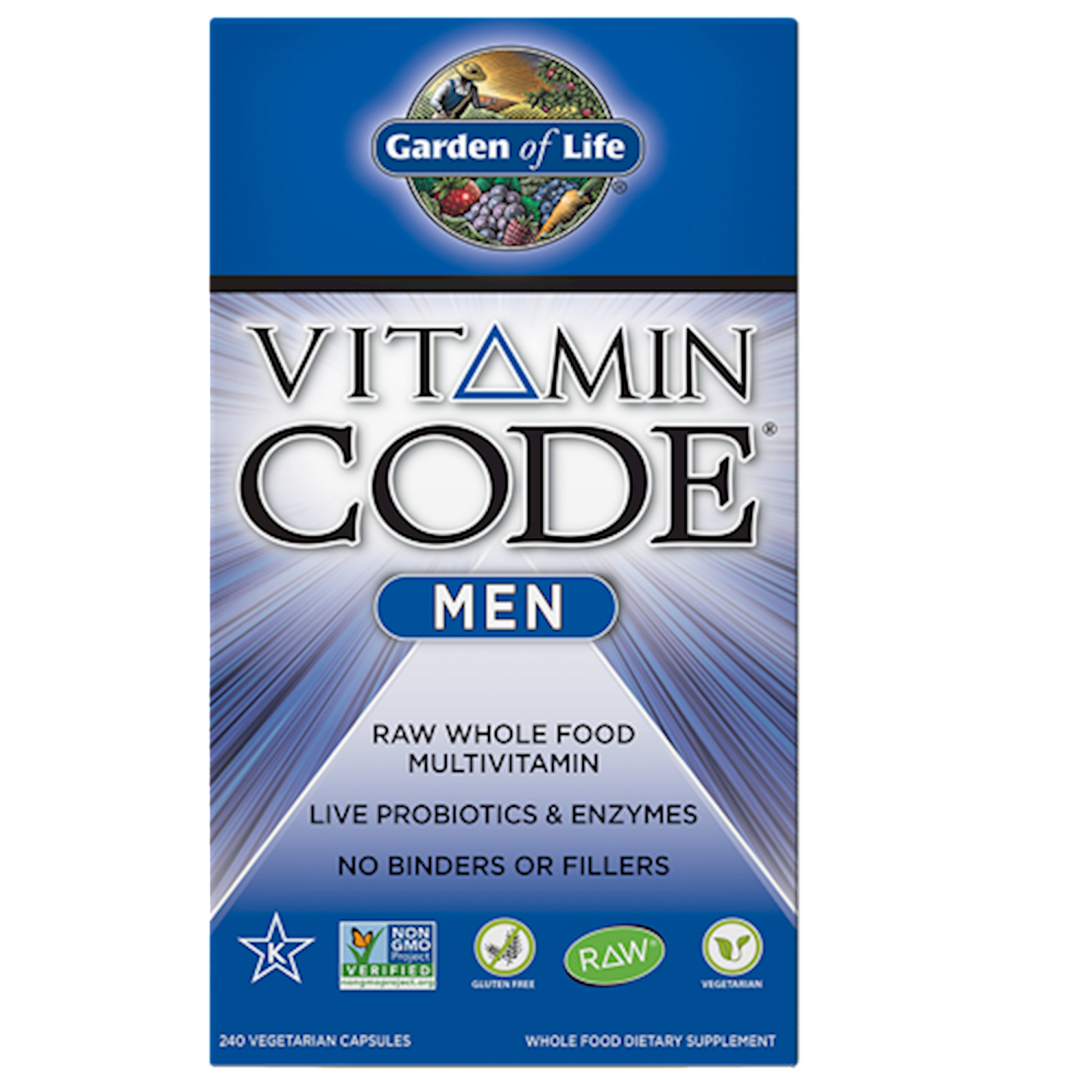 Made with individually grown nutrients utilizing probiotic cultivation to produce RAW Food-Created Nutrients, Vitamin Code supplements are delivered in a whole food base of fruits and vegetables. Vitamin Code supplements are RAW, which not only means that they are produced below 115 F, but also means that these nutrients come with their natural cofactors, along with live probiotics and enzymes, just like raw foods! Vitamin Code raw powders are delivered in capsules without any binders or fillerseverything you want and nothing you dont want. Vitamin Code Men is a comprehensive whole food multi-nutrient formula, specifically formulated to meet the unique needs of active men, providing the nourishment the body craves to support optimal health and well-being.* Twenty-three fruits and vegetables add supporting antioxidants, vitamins and nutrient cofactors. RAW means no high heat, synthetic binders, fillers, artificial flavors, sweeteners, colors or additives commonly used in tablets. Whole food means RAW Food-Created Nutrients are blended in a base of 23 fruits and vegetables together with food cofactors. Vitamin Code Mens Multivitamin Benefits: Supports mental and physical energy* Supports heart and prostate health* Helps to support a healthy stress response* Supports healthy digestion with live probiotics and enzymes* Vitamin Code Mencomprehensive RAW whole food multi-nutrient formula to meet the needs of active men.
