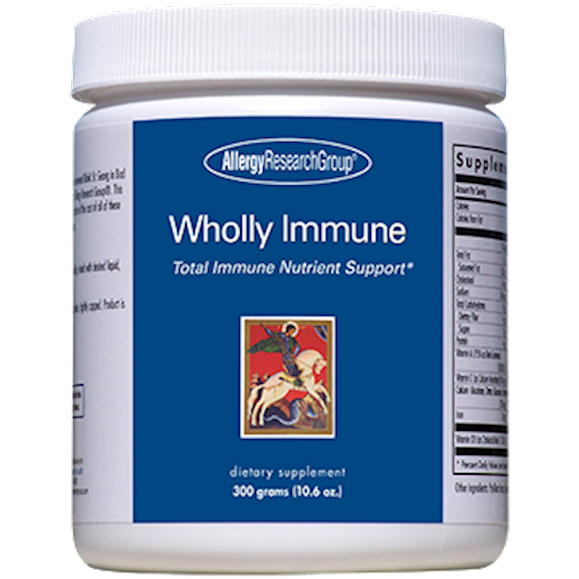 Originally formulated by Dr Friedrich Douwes, MD, founder of the renowned Klinik St. Georg in Bad Aibling, Germany, and Stephen A Levine, PhD, founder of Allergy Research Group, Wholly Immune is a comprehensive blend of nutrients and herbs designed to support general nutrition and immune system function, provide antioxidant support, and support liver detoxification.* This reformulated proprietary blend of herbs and nutrients now includes riboflavin-5-phosphate, P5P, 5-MTHF, and methylcobalamin, as well as MaitakeGold 404 mushroom blend, and SelenoExcell selenium complex. Convenient powder form is a fraction of the cost of these nutrients taken separately. MaitakeGold 404 is a trademark of Tradeworks Group, Inc. SelenoExcell is a registered trademark of Cypress Systems Inc.