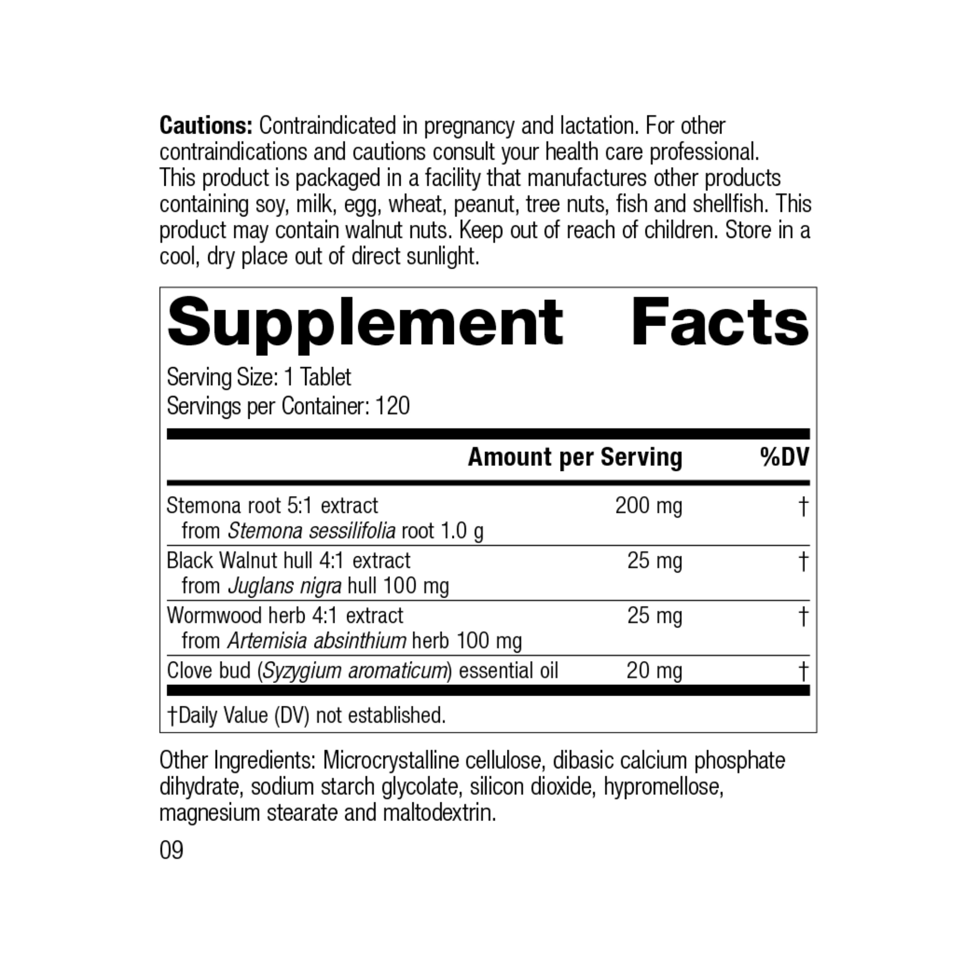 Wormwood Complex contains Stemona, Wormwood, Black Walnut Hulls and Clove which work to support a healthy intestinal environment. These herbs have been traditionally used in herbal preparations to: