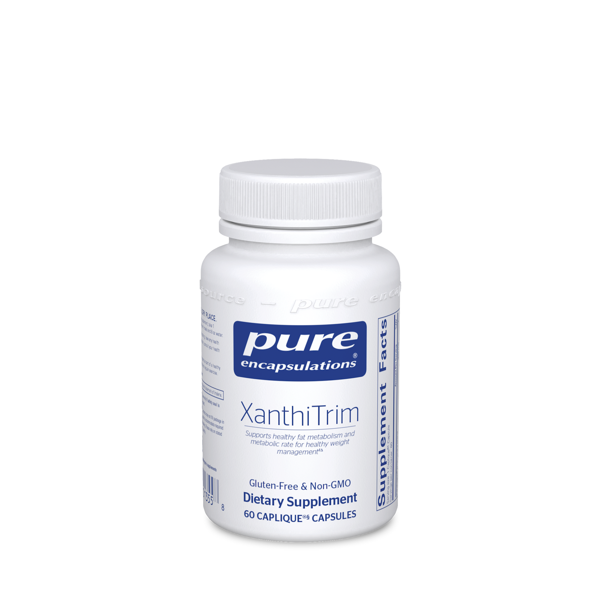 Supports healthy fat metabolism and metabolic rate for healthy weight management* XanthiTrim supports healthy weight management when combined with a healthy diet and exercise. XanthiTrim contains 300 mg of Xanthigen per serving, a synergistic combination of fucoxanthin from brown seaweed and pomegranate seed oil. In a 16-week, randomized study, Xanthigen supported healthy weight management and fat metabolism in volunteers. This was attributed in part to its ability to encourage resting energy expenditure and thermogenesis, the bodys natural ability to dissipate caloric energy as heat from the mitochondria of adipose tissue. This results in oxidation and utilization of fats rather than fat storage. In this study, Xanthigen also maintained healthy liver fat metabolism and function, and healthy lipid levels. Subjects were on a moderately calorie-restricted diet. GreenSelect Phytosome is a proprietary, caffeine-free extract from green tea, that is 1 part GreenSelect green tea to 2 parts phosphatidylcholine. This allows for greater absorption of epigallocatechin gallate, or EGCG, one of the primary components known to support a healthy metabolism. Green tea has demonstrated the ability to promote resting energy expenditure and thermogenesis in a number of clinical studies. A 90-day study involving GreenSelect Phytosome revealed its ability to support healthy weight management and body composition in subjects following a calorie-restricted diet.* Supports healthy metabolic rate* Promotes healthy fat metabolism and utilization* Made with vegetarian ingredients